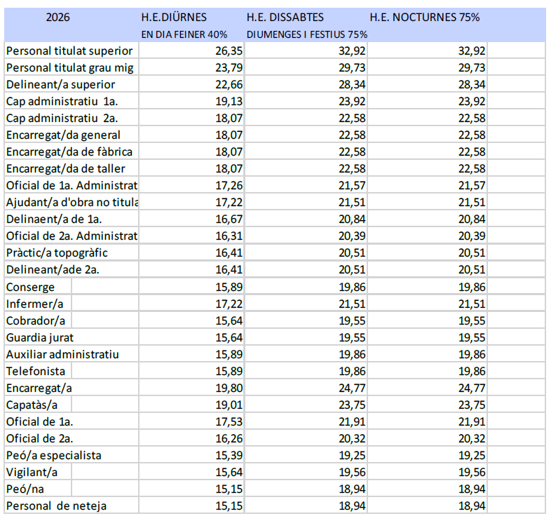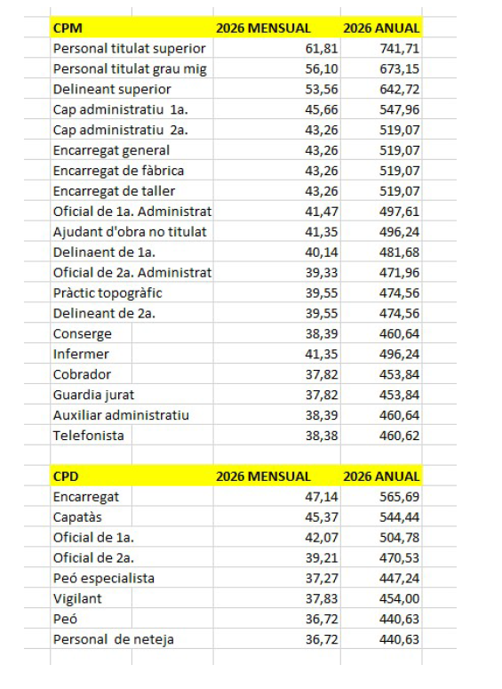 Les taules salarials corresponents a l’any 2026 s’incorporen a aquesta acta com Annex II.