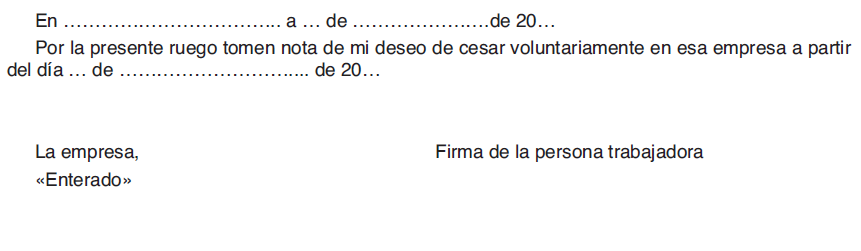 ANEXO II.- PREAVISO DE CESE POR LA PERSONA TRABAJADORA.