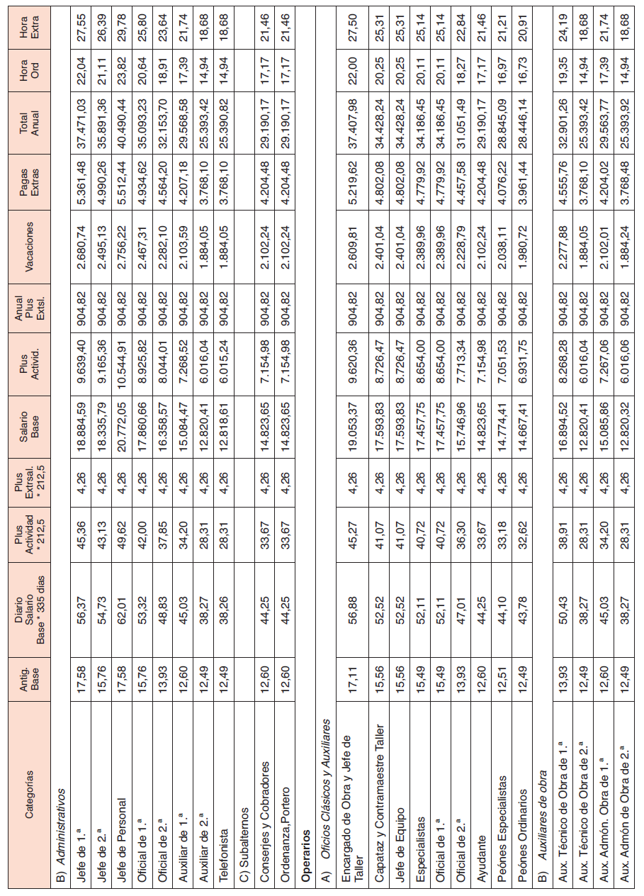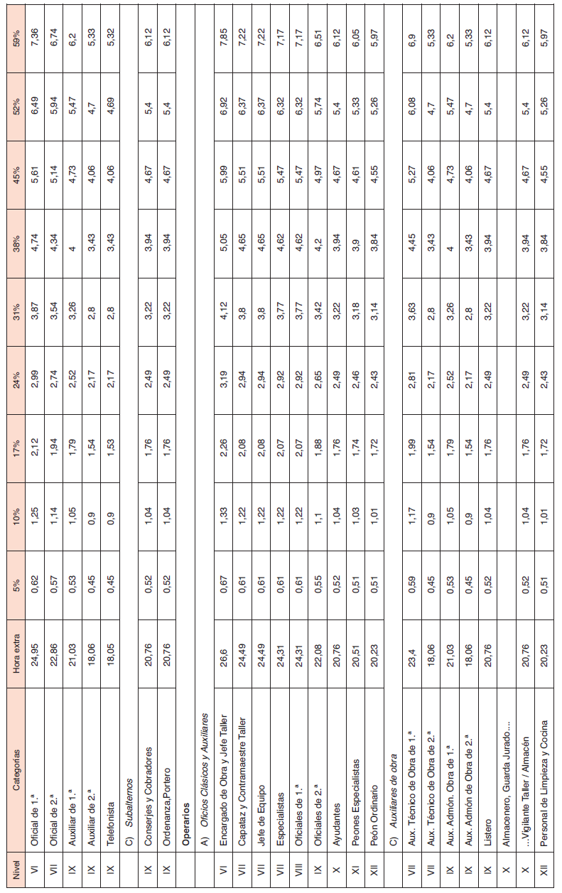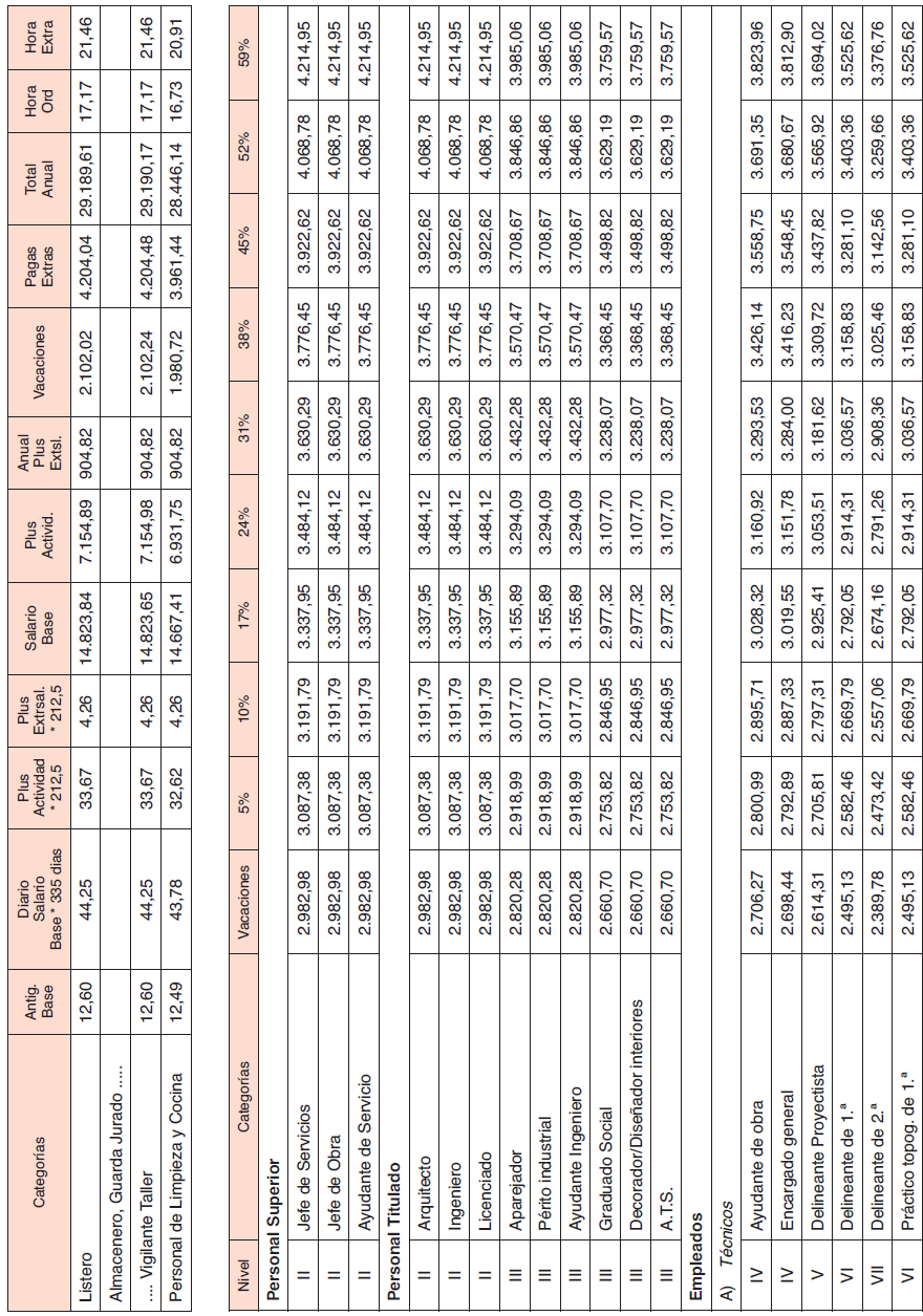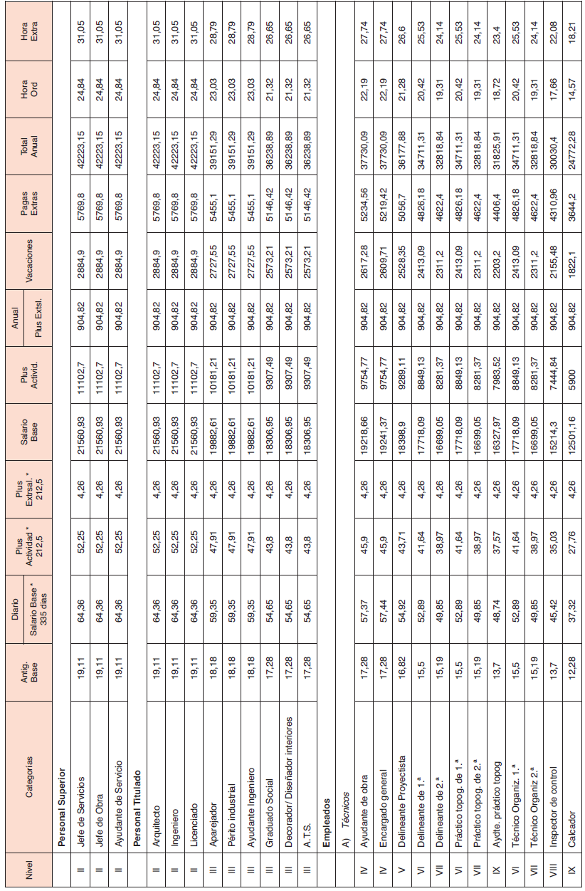 Reunidas en Bilbao, en la sede del Consejo de Relaciones Laborales, la organización sindical CCOO que ostentan el 100% de la representación de la parte sindical en la Comisión Paritaria del convenio colectivo del sector de la Construcción de Bizkaia y las organizaciones empresariales ASCOBI-BIEBA, Asociación Vizcaína de Excavadores (AVE-BIE) y Asociación de Maestros Pintores de Bizkaia (AMPV) que ostentan el 100% de la representación empresarial en dicha comisión, acuerdan unánimemente la aprobación de las tablas salariales de la Construcción de Bizkaia para el año 2026, dando cumplimiento a lo previsto en el artículo 25 del convenio colectivo sectorial en base a lo siguiente: