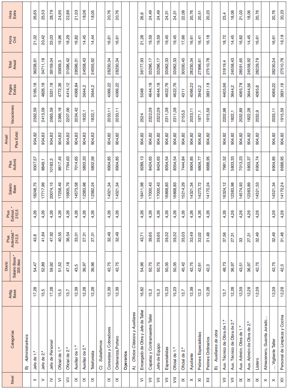 Asimilable al nivel IX de las tablas salariales, auxiliar administrativo/a de 1.ª.