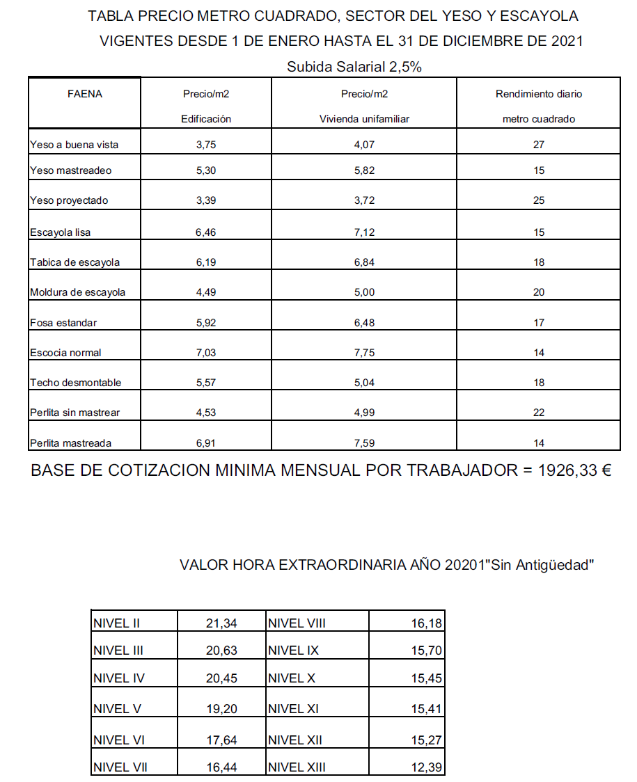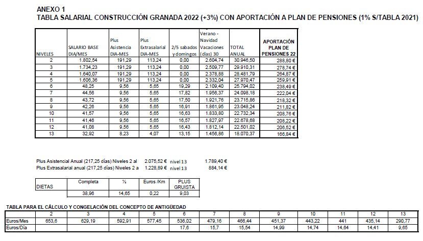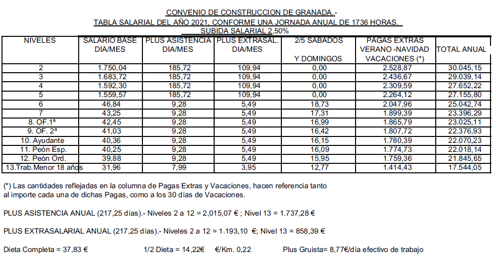 P.N. = Paga de navidad recogido en las tablas salariales 2021 del Convenio Provincial de Granada.