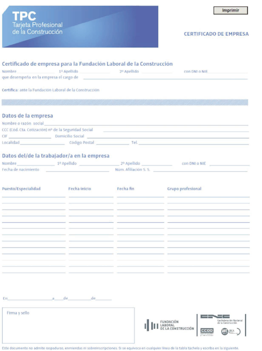 5.- La acreditación de la categoría profesional por la Tarjeta Profesional de la Construcción no obliga a la empresa a la contratación del trabajador con esa categoría.