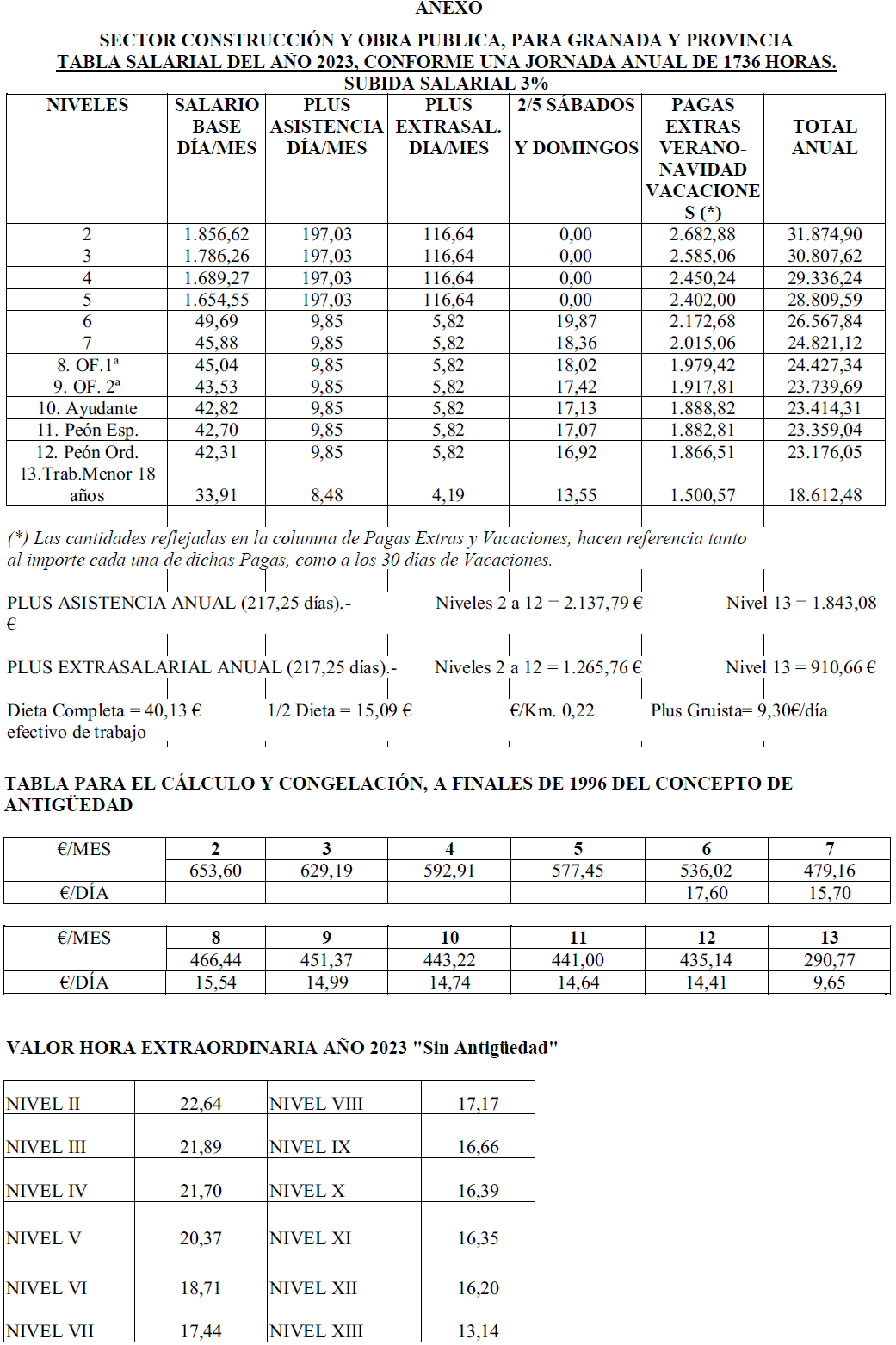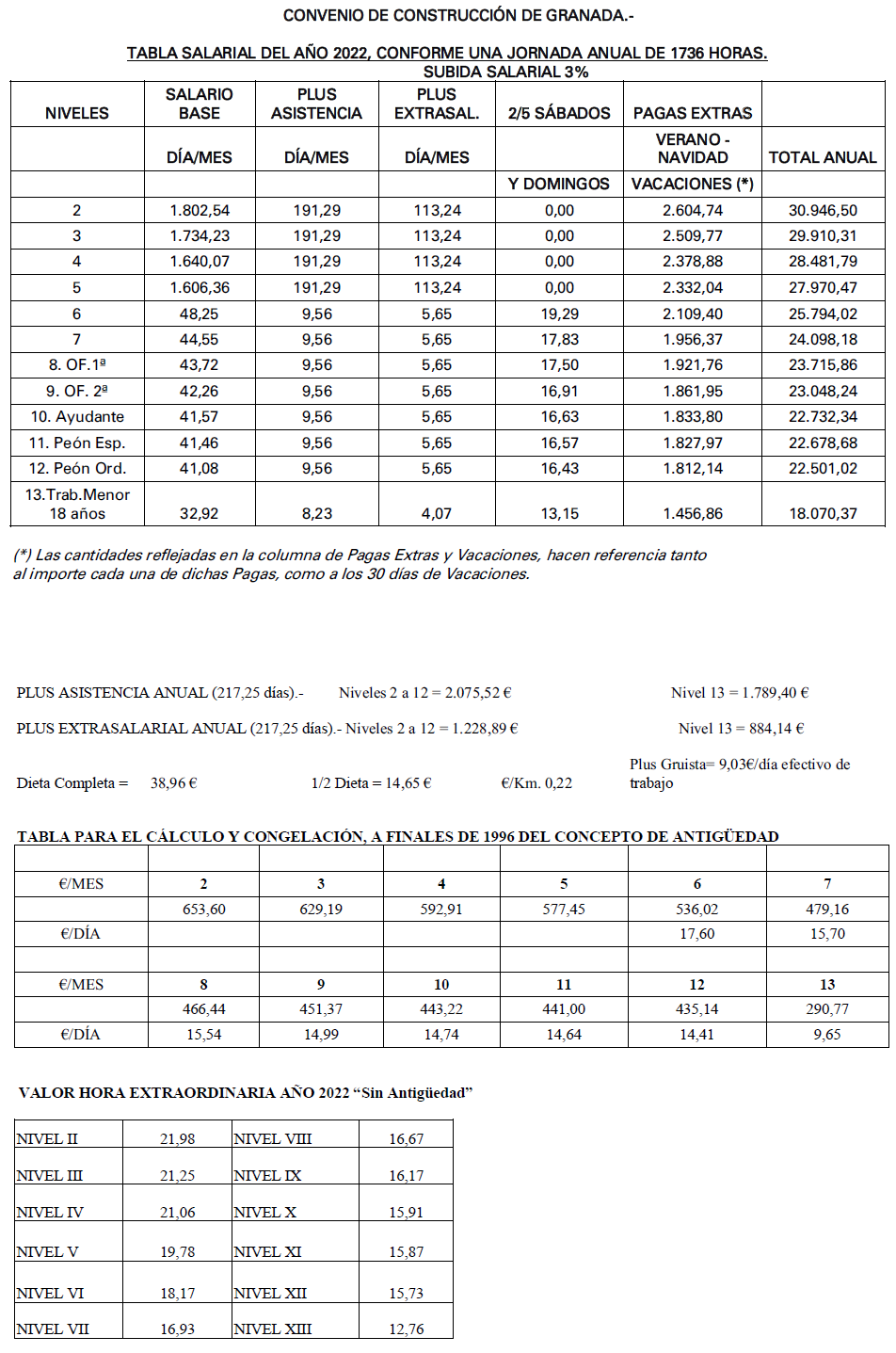 P.J. = Paga de junio recogida en las tablas salariales 2021 del Convenio Provincial de Granada.