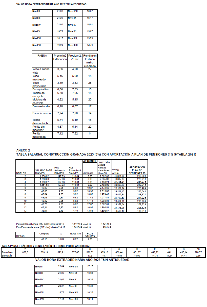 Se adjunta como Anexo 1 de esta acta las tablas de 2022, como Anexo 2 las tablas salariales de 2023 y como Anexo 3 las tablas salariales de 2024.