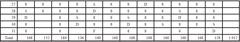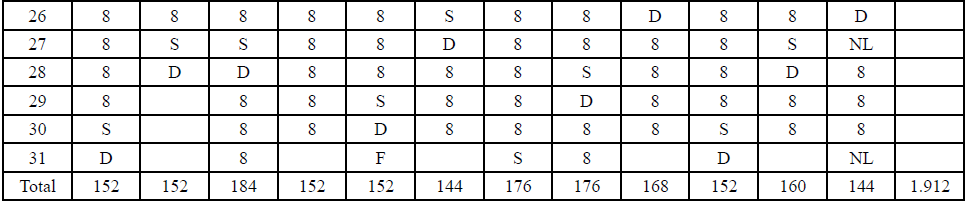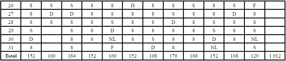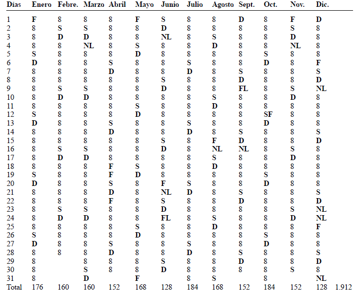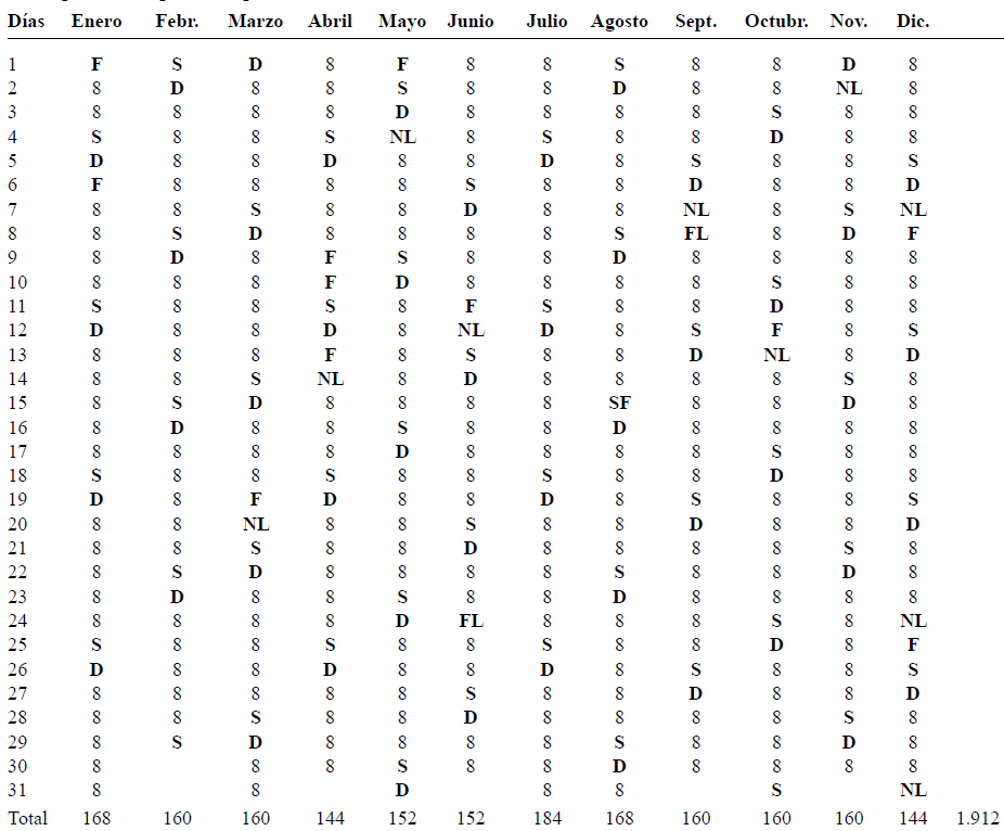 R.A. = SB x 335 + (PS x número de días efectivos de trabajo) + vacaciones+ PJ + PN.