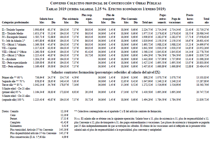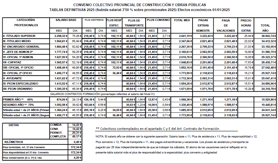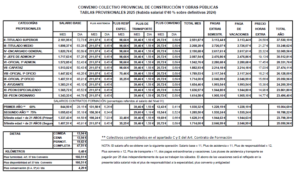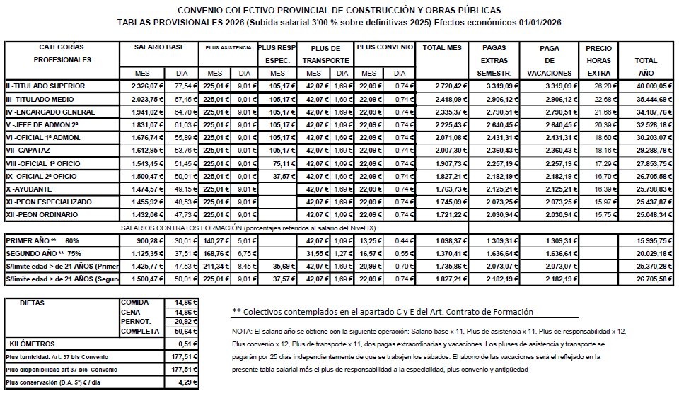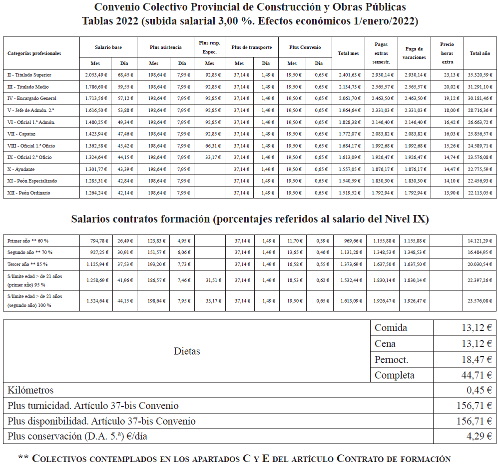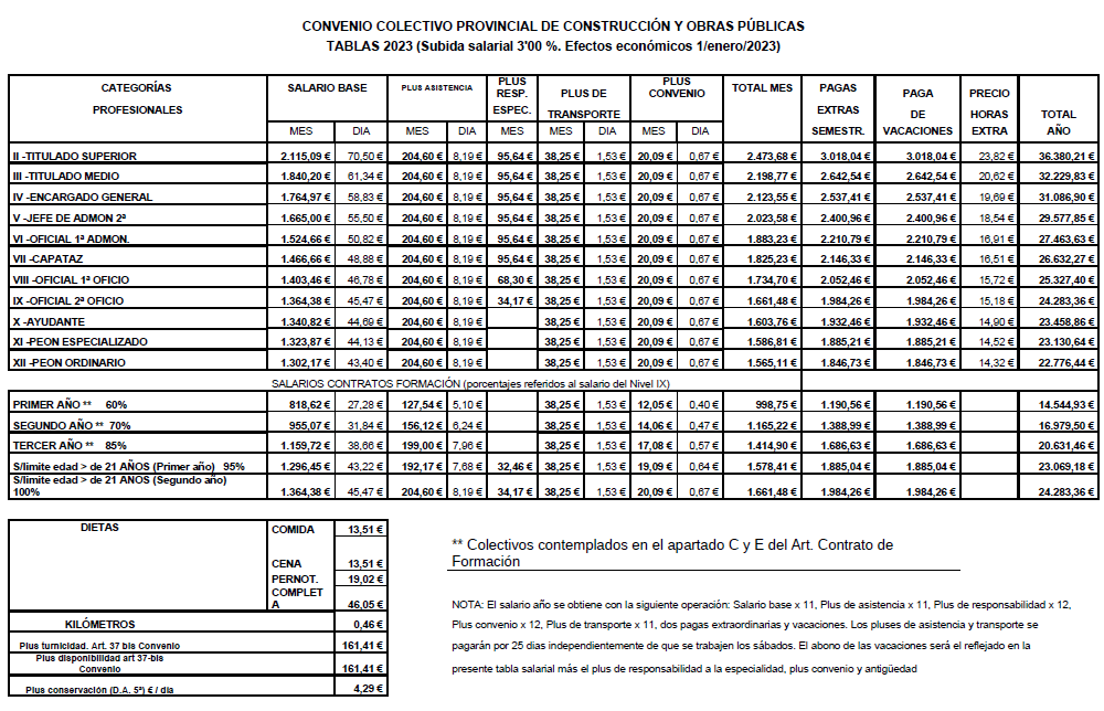 Primero.- Según dispone el artículo 56 apartado 2 letra c) del VII Convenio General de la Construcción publicado en el BOE de 23 de septiembre de 2023:
