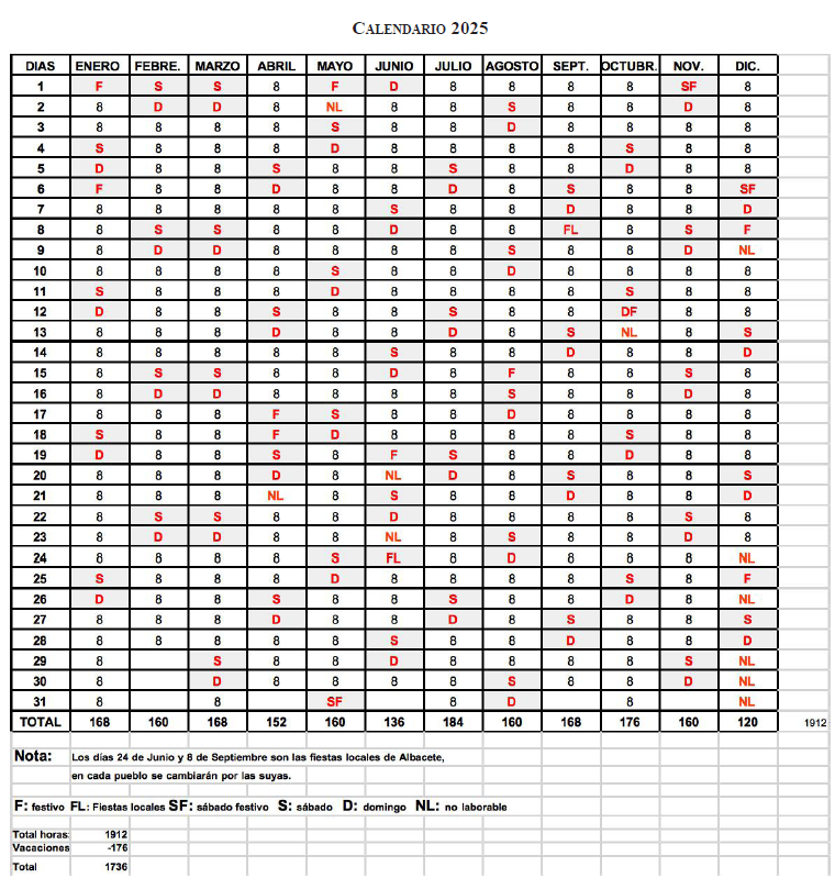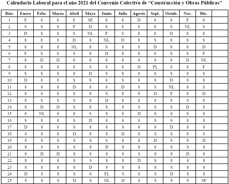 Se procede a la firma del calendario laboral del sector para el año 2025, cuyo texto y contenido se adjunta a esta acta.