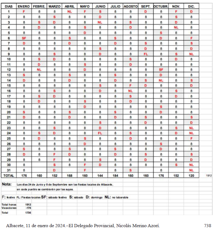 CALENDARIO 2024 (BOP Número 10 – Miércoles, 24 de enero de 2024)