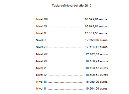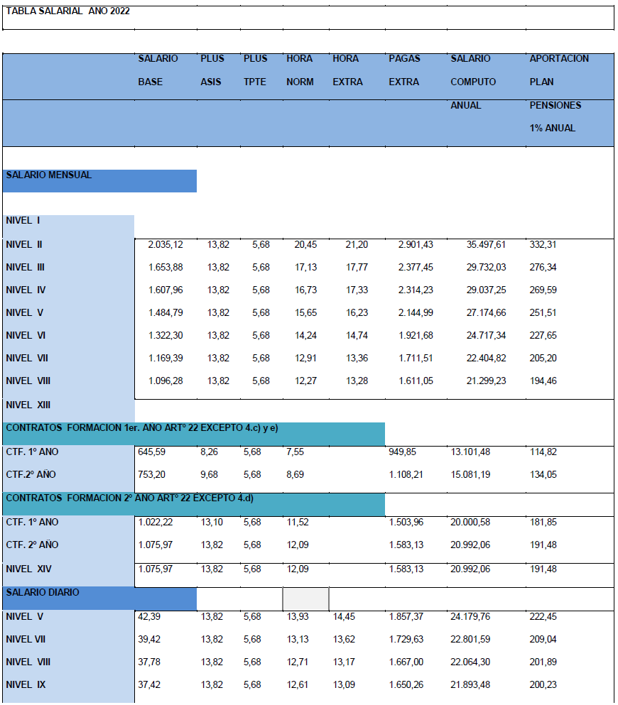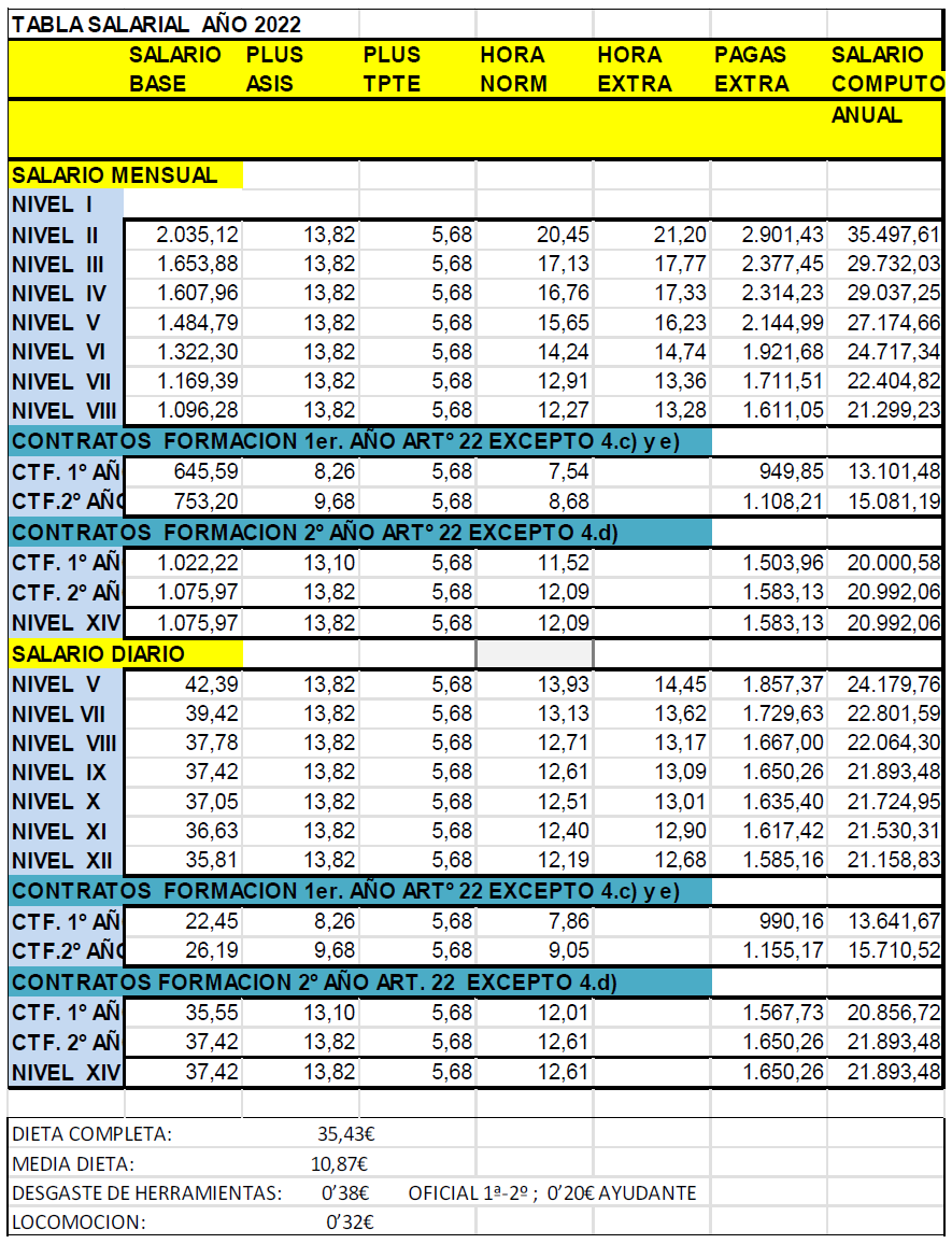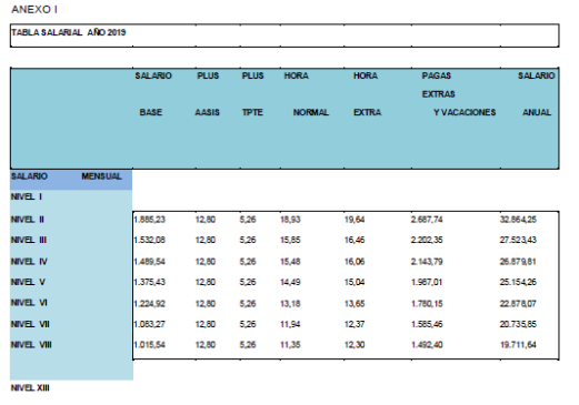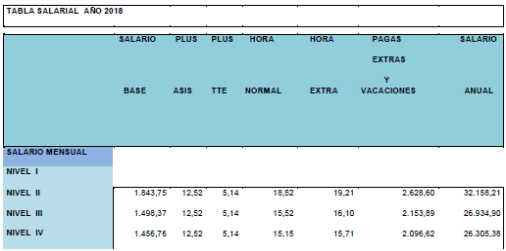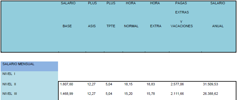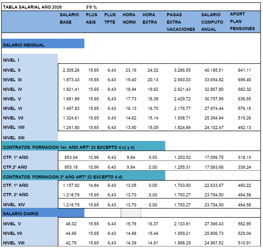 La tabla salarial de aplicación para el año 2026, tomando como base las tablas salariales vigentes del año 2025 y con efectos desde el 01/01/2026, es la siguiente: