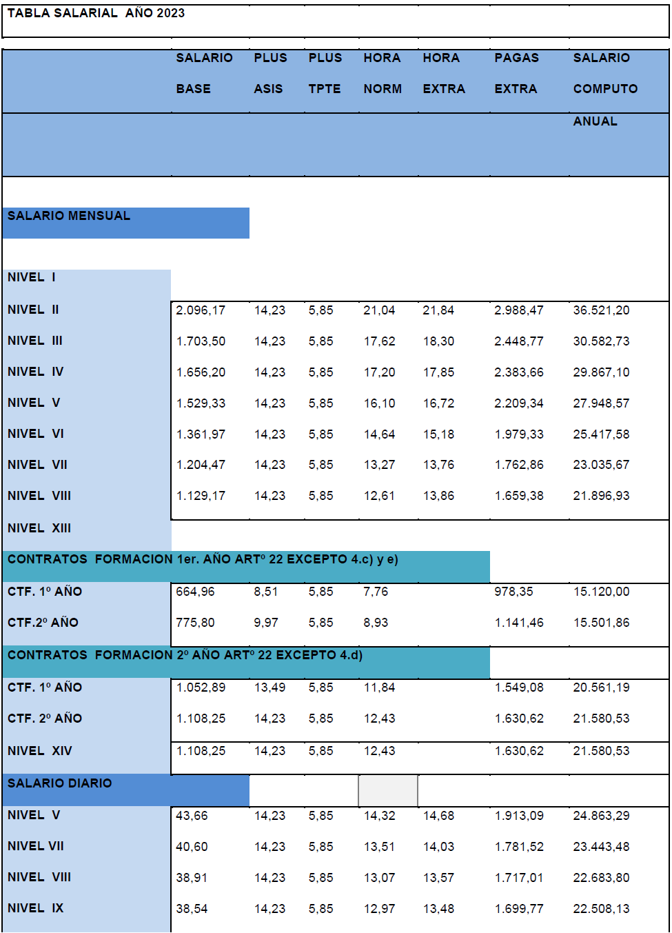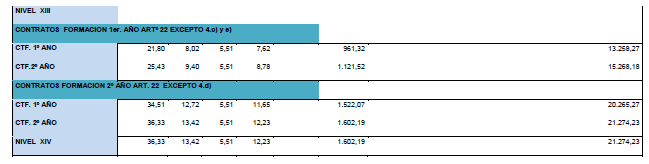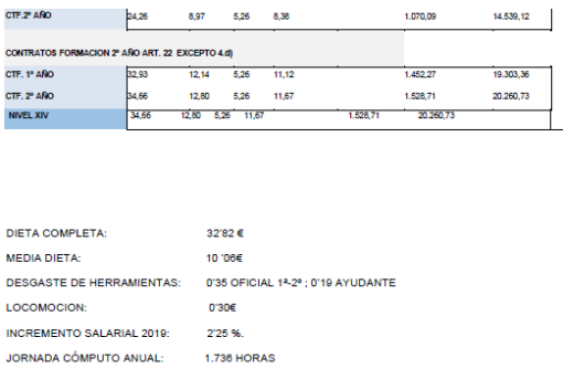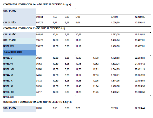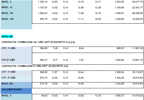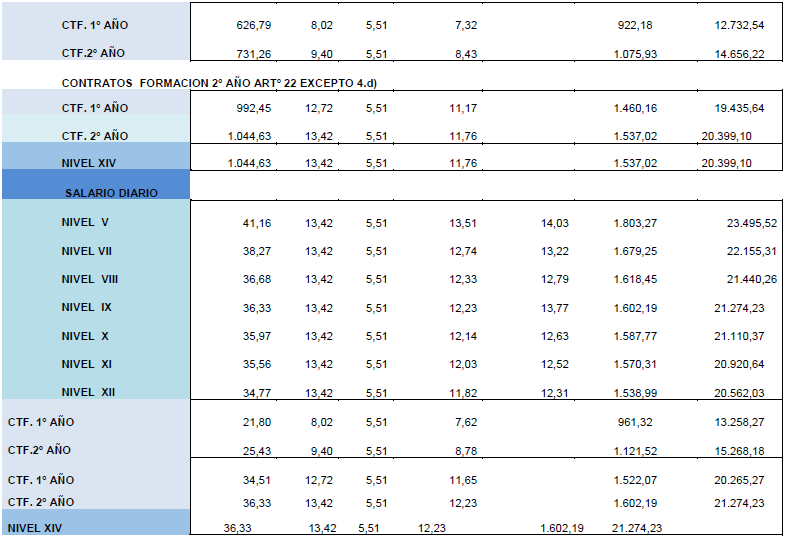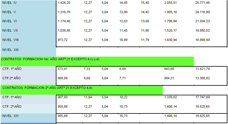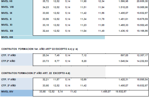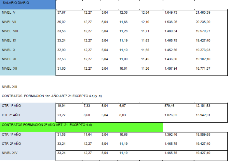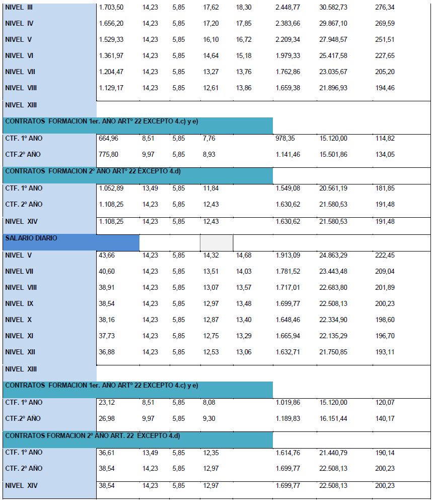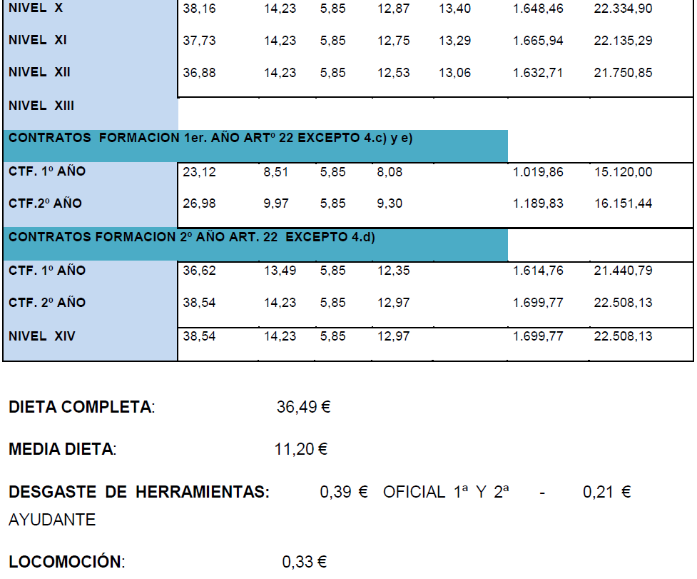 La tabla salarial de aplicación para el año 2025, calculándose con la tabla base 2024 y con efectos desde el 01/01/2025, es la siguiente:.