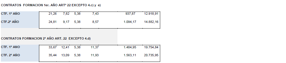 En este sentido se da traslado al VII CGSC, fijando el incremento para el año 2.024, de manera que, tomando las tablas vigentes durante el año 2.023 como base, éstas se actualizarán conforme a lo establecido en el Acuerdo de fecha 13 de junio de 2022, publicado en el BOE de fecha 5/08/2022, incrementándose en un 2,75%. Los CF 1º año, art 22, excepto 4 c) de salario mensual y diario, se adaptarán al SMI vigente.