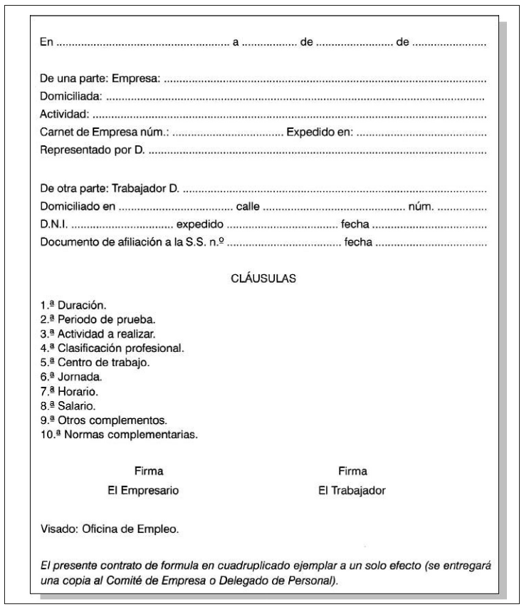 1. Contrato de Fijo de Plantilla es el que conciertan un empresario y un trabajador para su prestación laboral en la empresa por tiempo indefinido. Esta será la modalidad normal de contratación a realizar por empresarios y trabajadores en todos los centros de trabajo de carácter permanente.