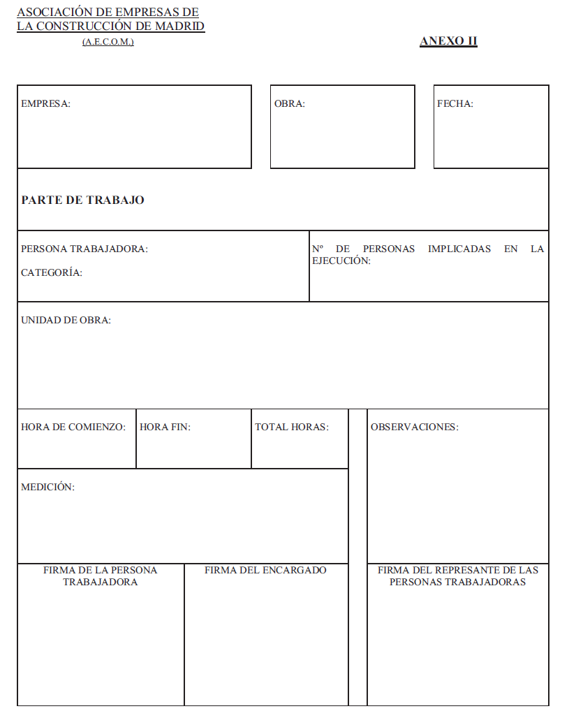 ANEXO II.- PARTE DE TRABAJO.