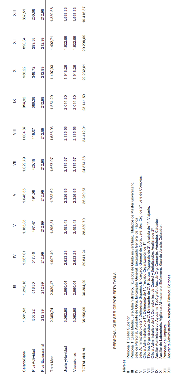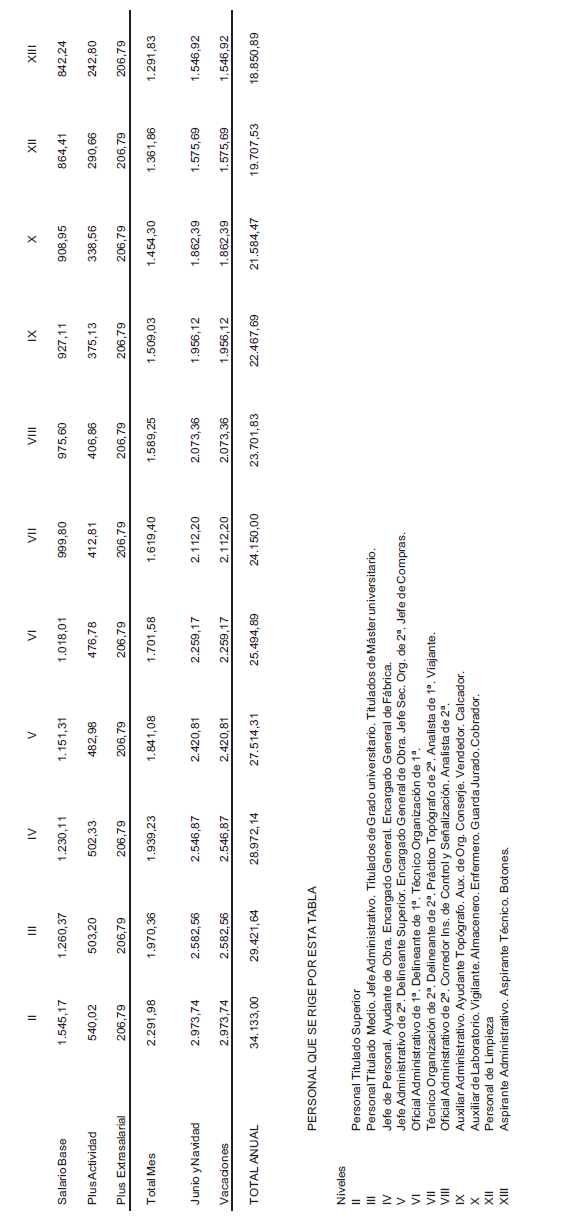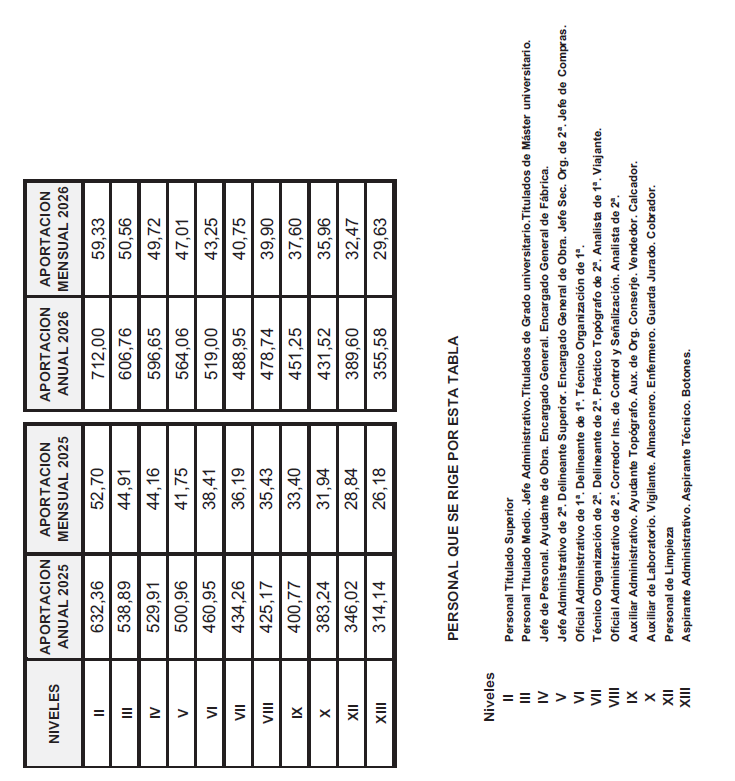 ANEXO VII.- TABLA DE RETRIBUCIONES MENSUALES – AÑO 2026.