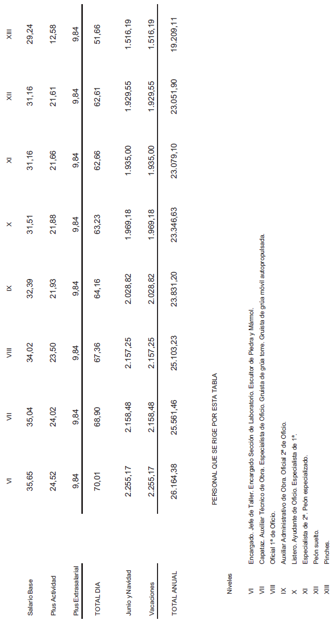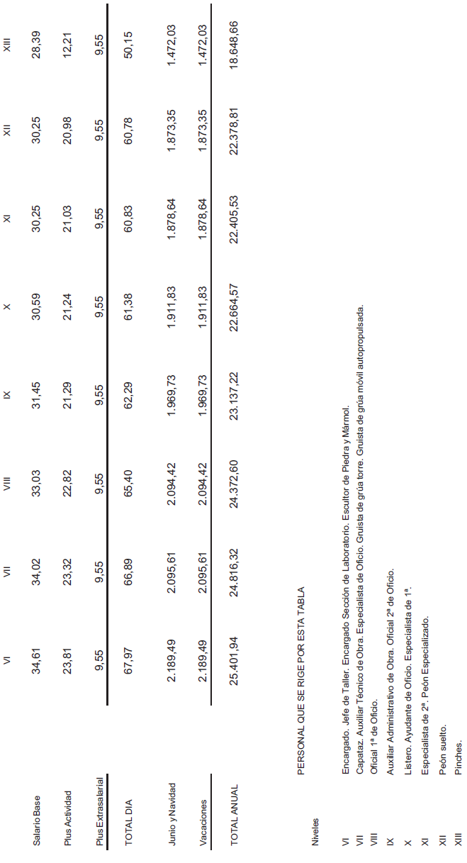 ANEXO VI.- TABLA DE RETRIBUCIONES DIARIAS – AÑO 2025.