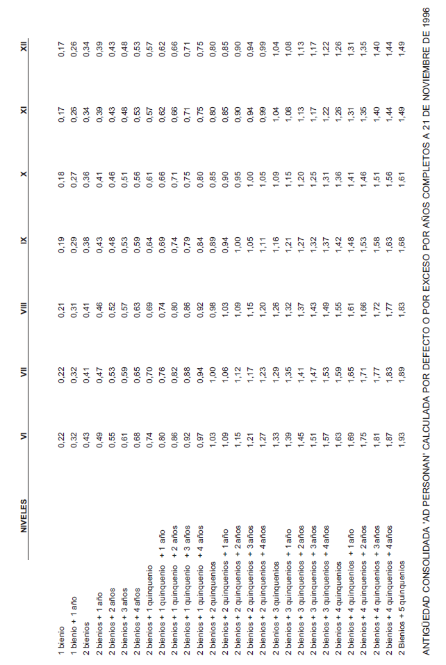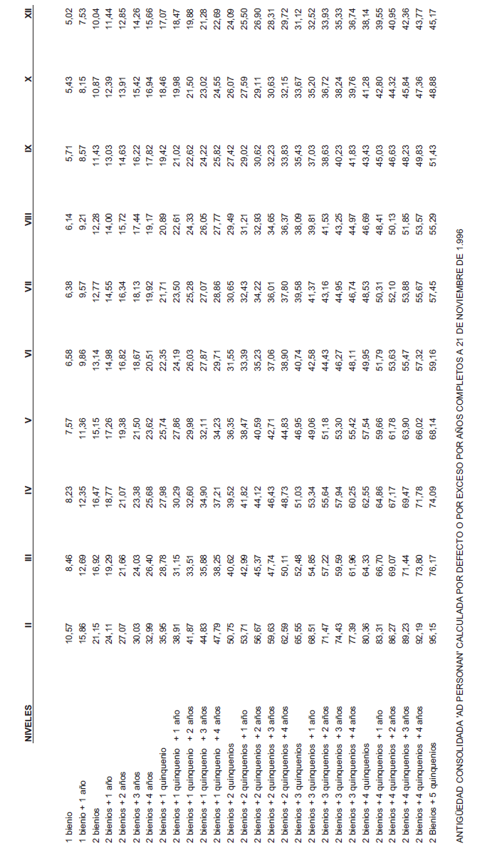 ANEXO IX.- TABLA DE ANTIGÜEDAD MENSUAL.