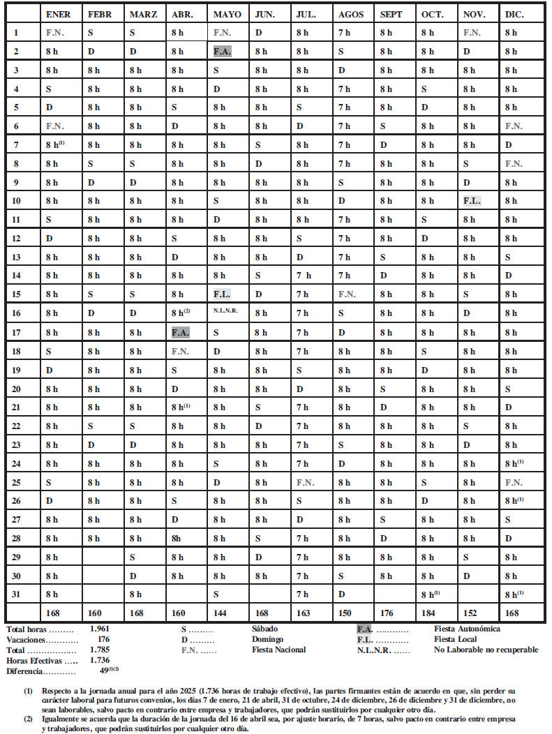 ANEXO XII.- CALENDARIO LABORAL 2025.