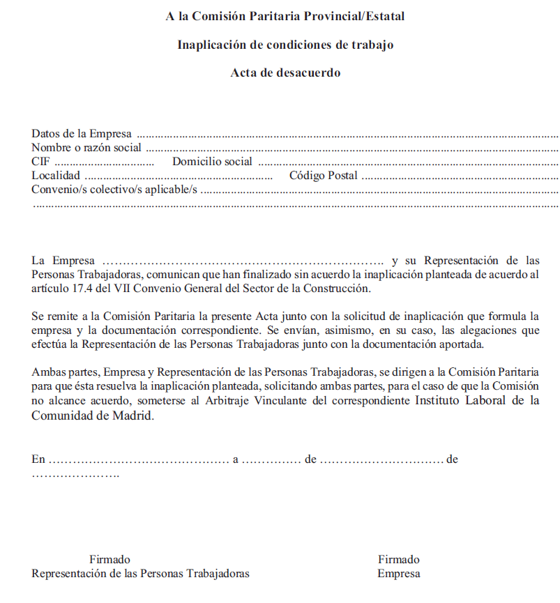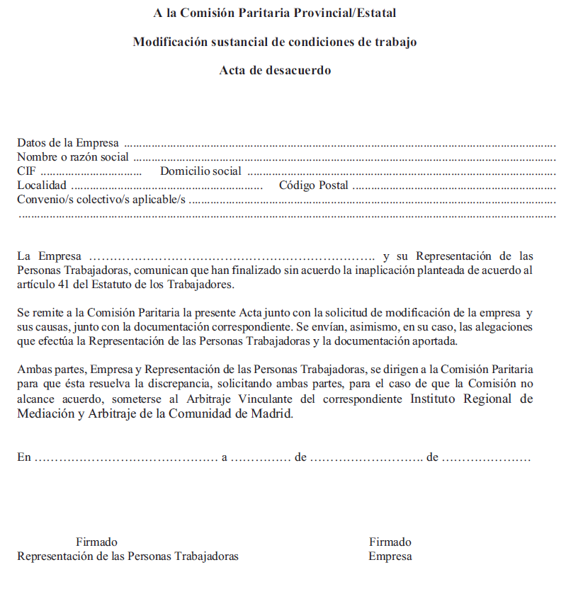 Si se sometiera el desacuerdo a la Comisión Paritaria a fin de que ésta solvente las discrepancias, se deberán enviar las actuaciones junto con la correspondiente Acta de Desacuerdo recogida en el modelo del Anexo XV y que de forma específica se establece para este supuesto.