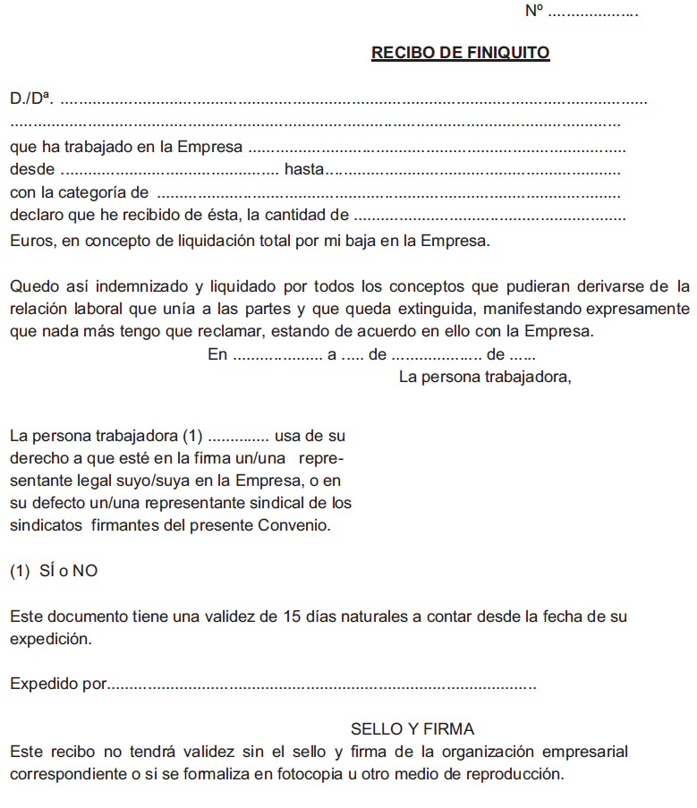 ANEXO XVII.- MODELO DE RECIBO DE FINIQUITO DE LA RELACIÓN LABORAL.