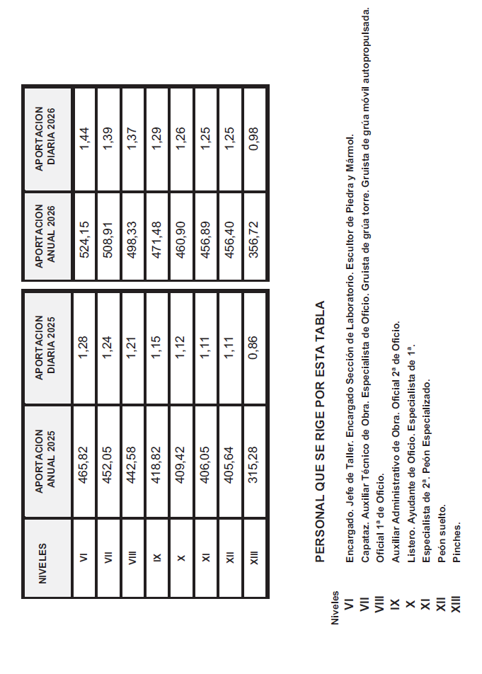 ANEXO VIII.- TABLA DE RETRIBUCIONES DIARIAS – AÑO 2026.