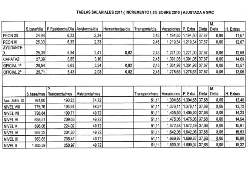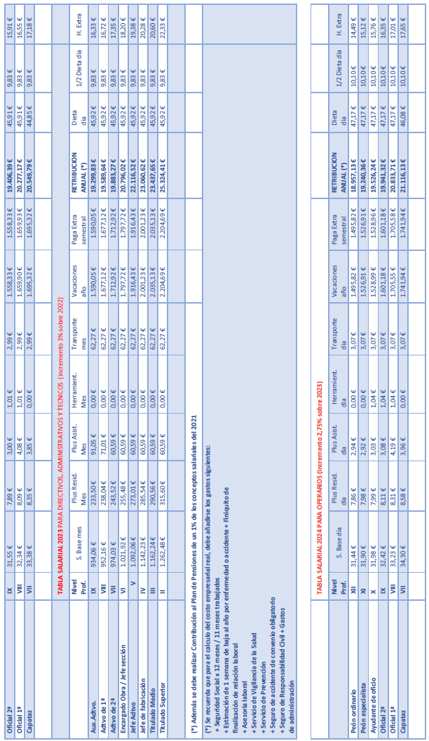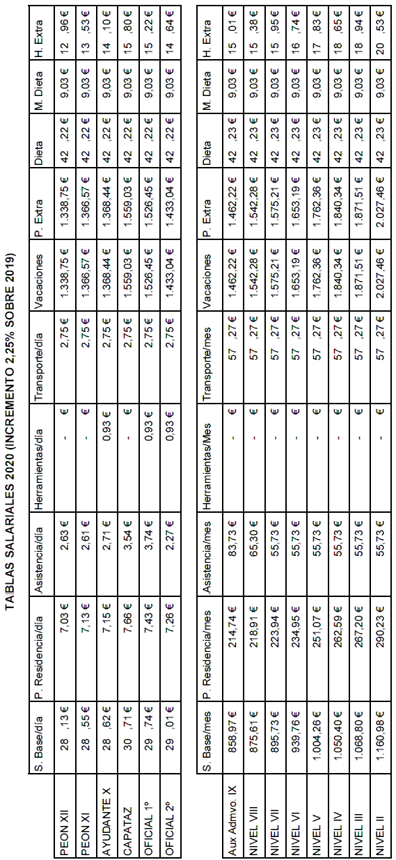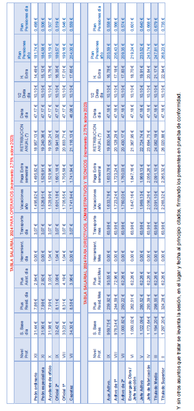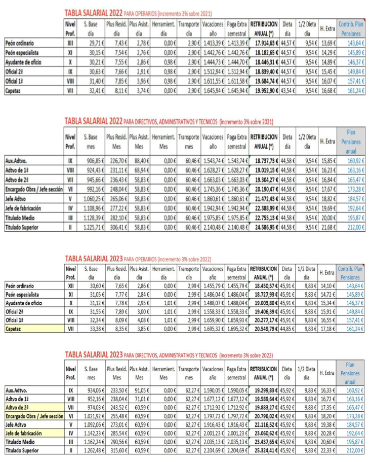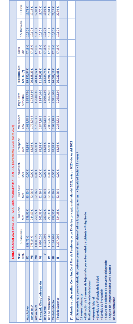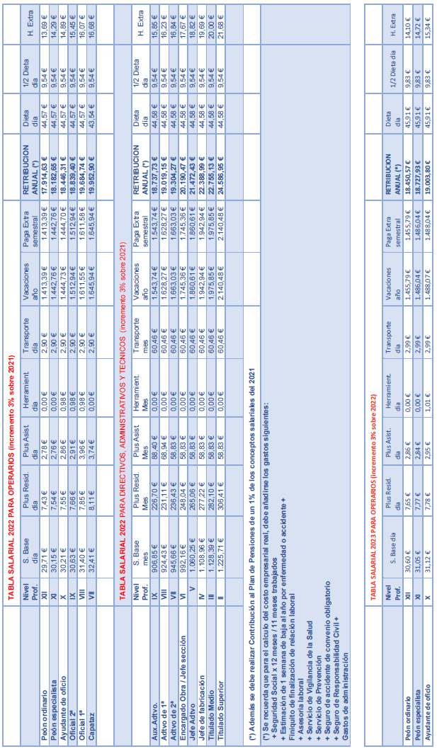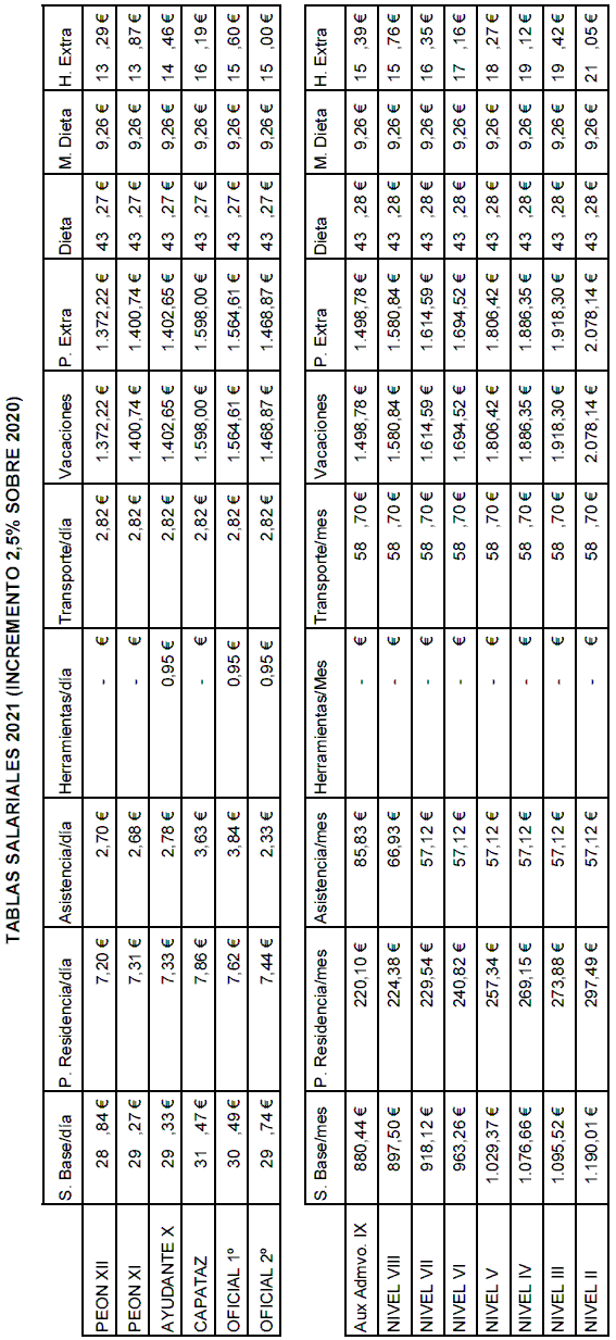 2. P.S Pluses salariales: recogidos en la tabla salarial de 2021 del convenio provincial.
