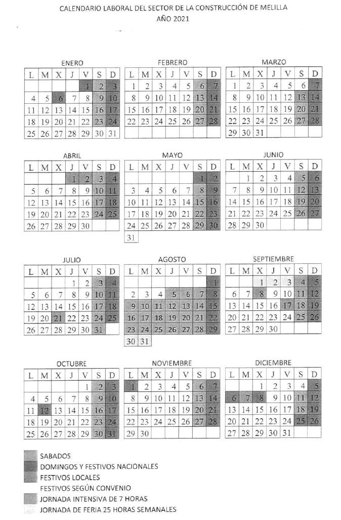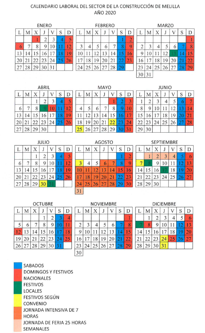 RESOLUCIÓN DE FECHA 13 DE FEBRERO DE 2025, POR LA QUE SE REGISTRA Y PUBLICA EL ACTA DEL ACUERDO DEL CONVENIO COLECTIVO DE CONSTRUCCIÓN DE LA CIUDAD AUTÓNOMA DE MELILLA, APROBANDO EL CALENDARIO LABORAL 2025.