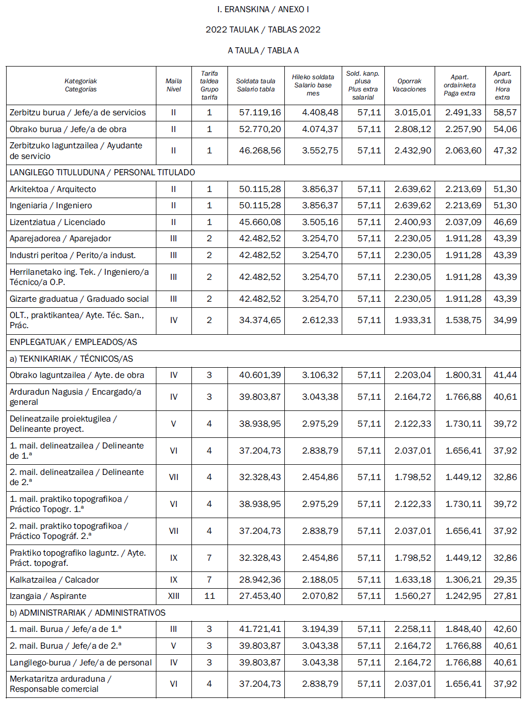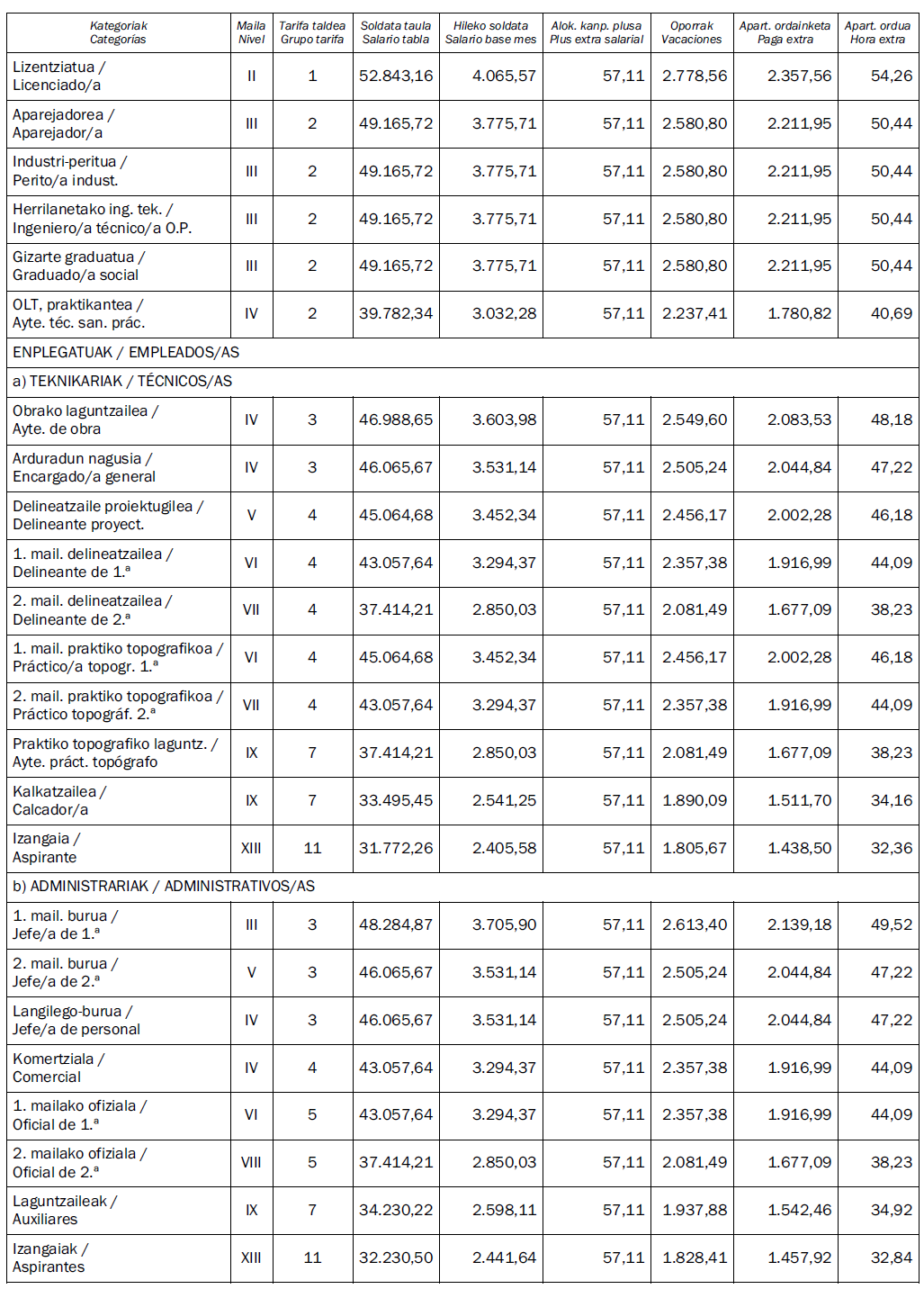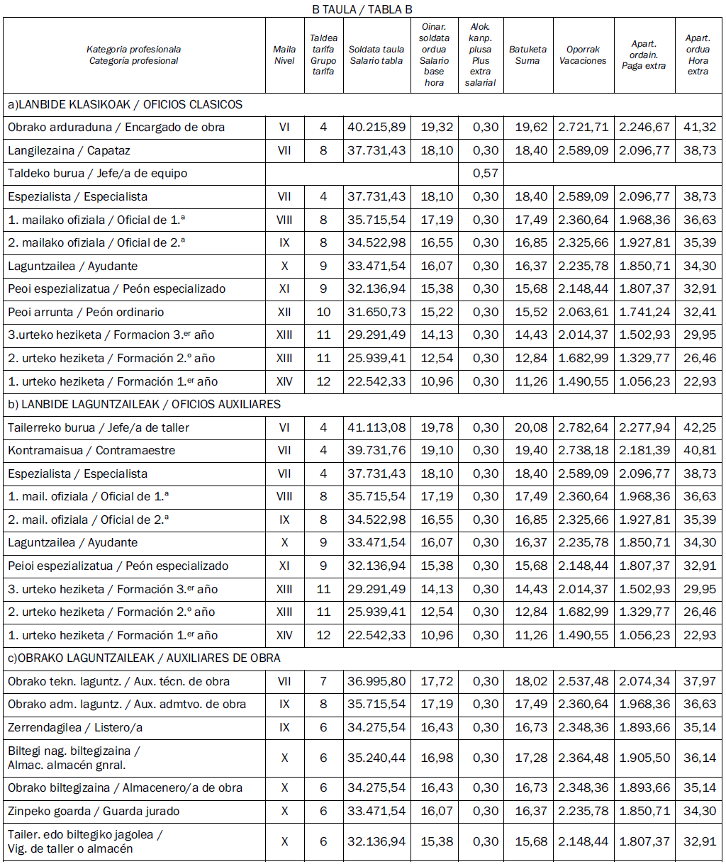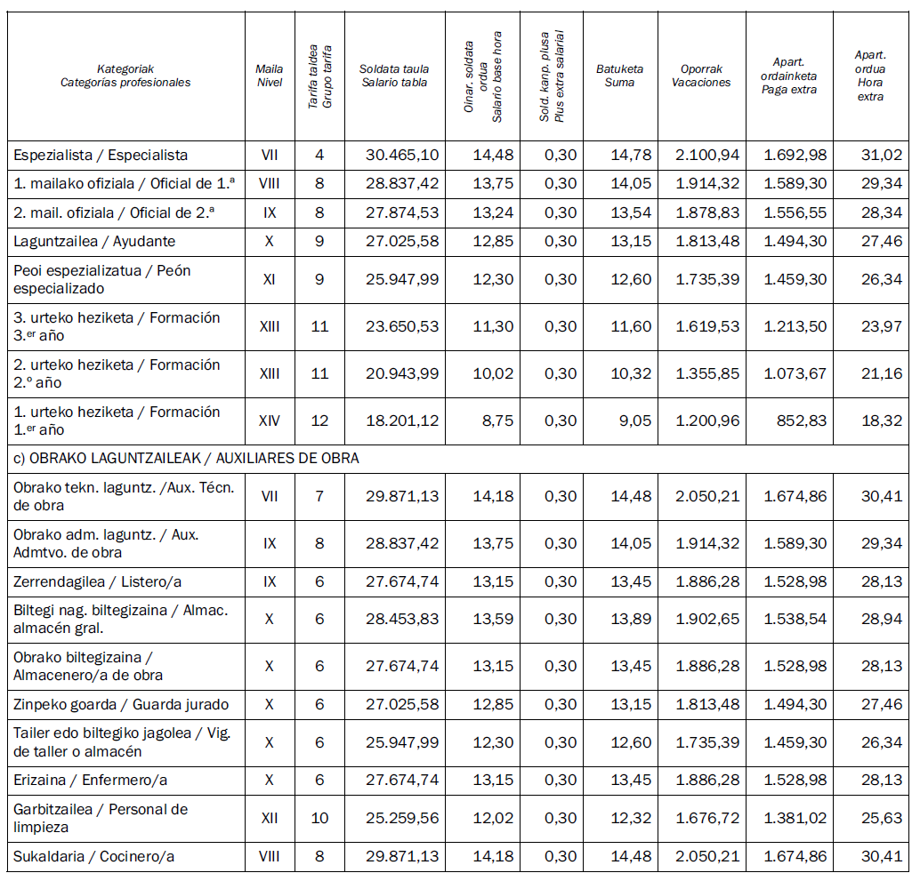 Todos/as aquellos/as trabajadores/as que previamente hayan obtenido el carnet de Gruísta homologado por el Gobierno Vasco, y siempre que la misión en obra sea la utilización de la grúa, percibirán el salario equivalente a oficial de primera, oficios clásicos.
