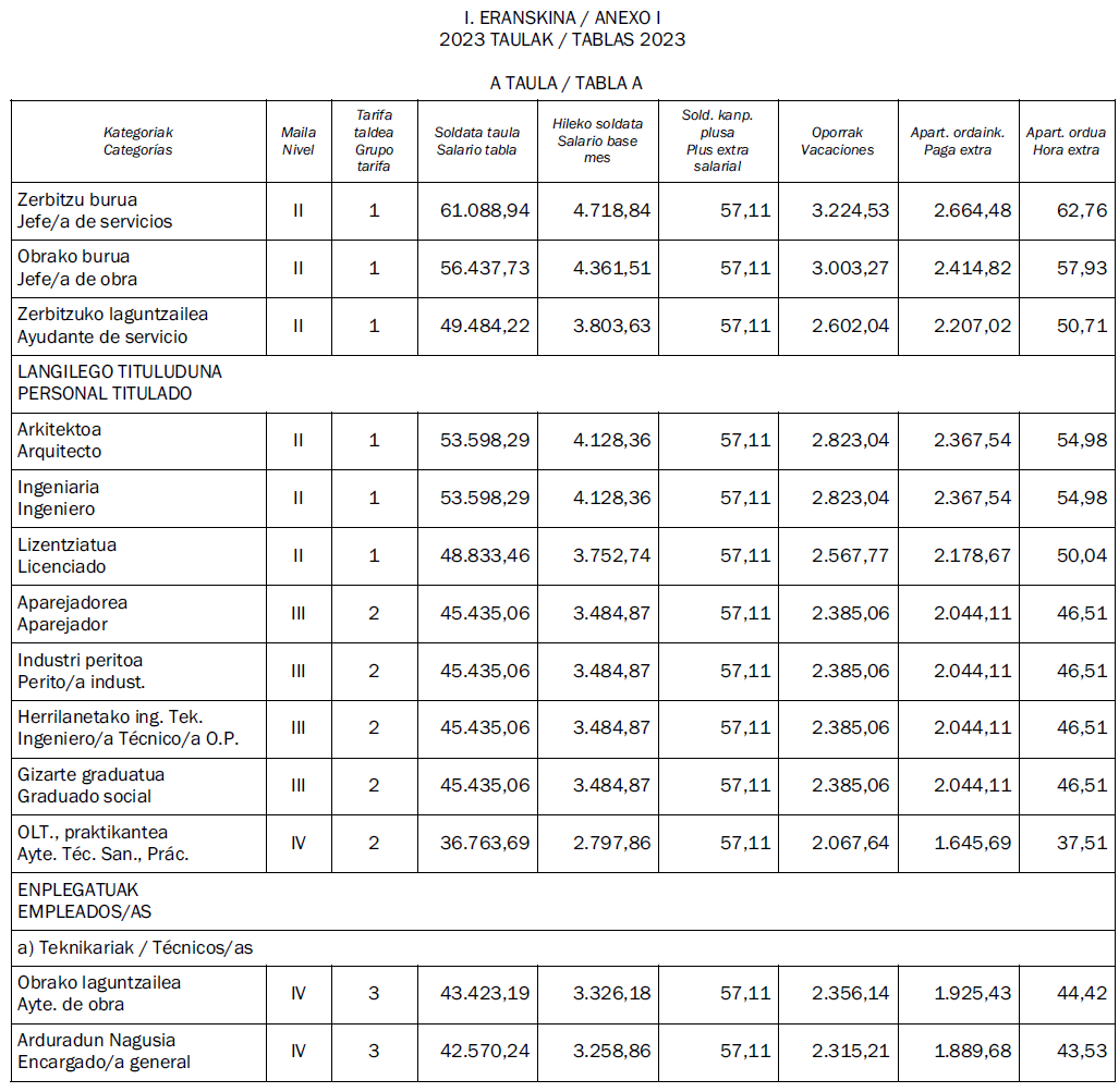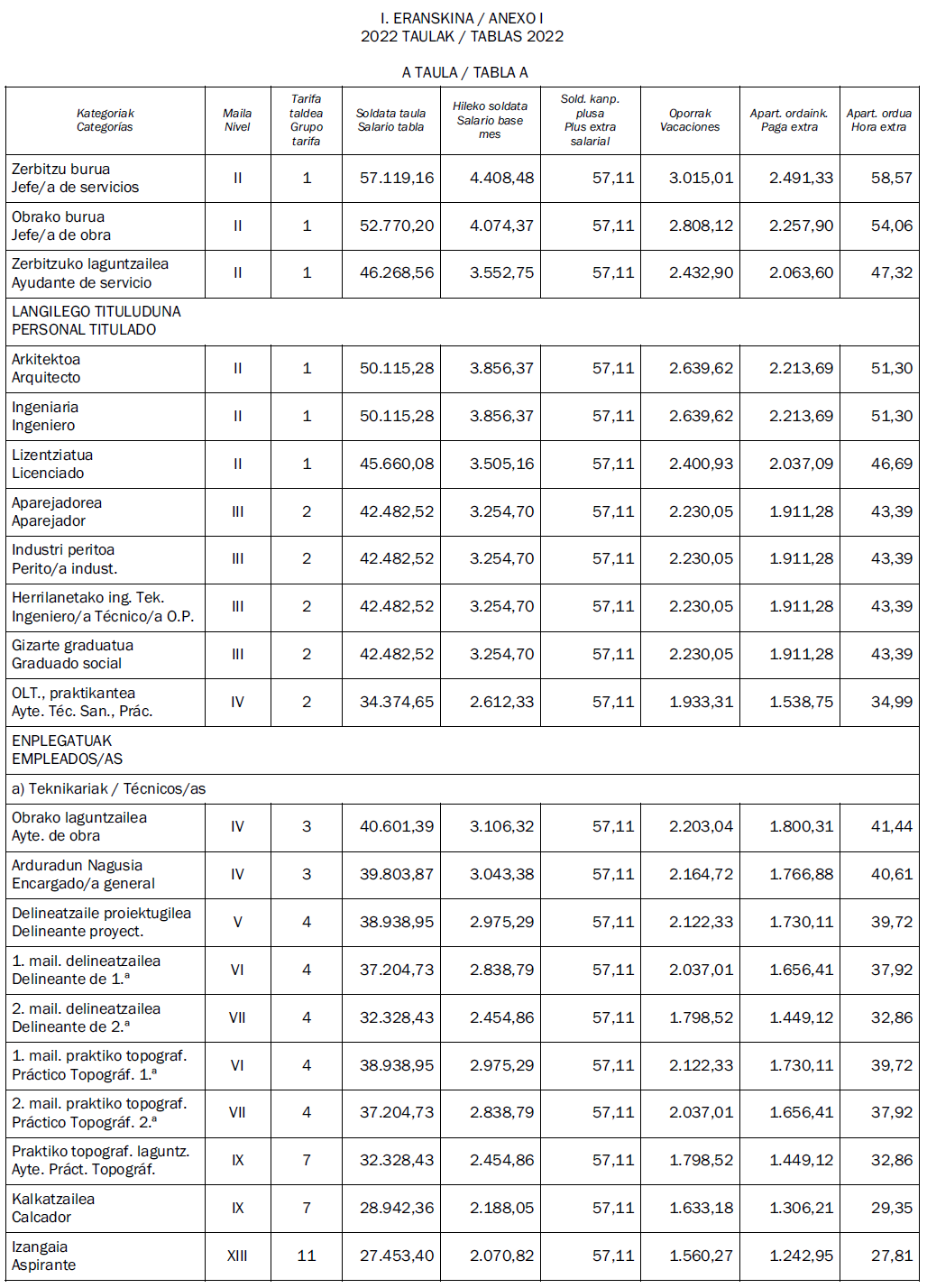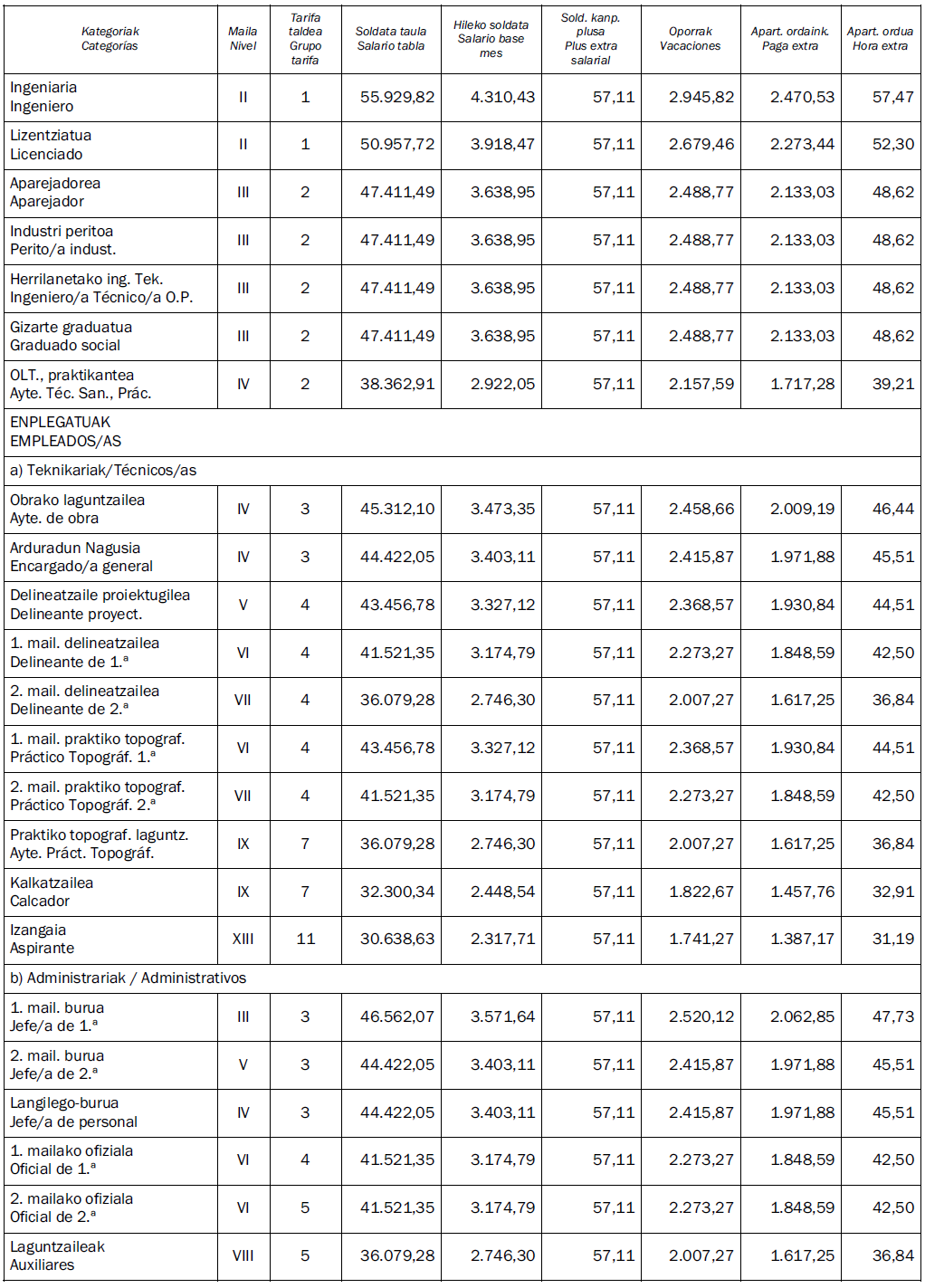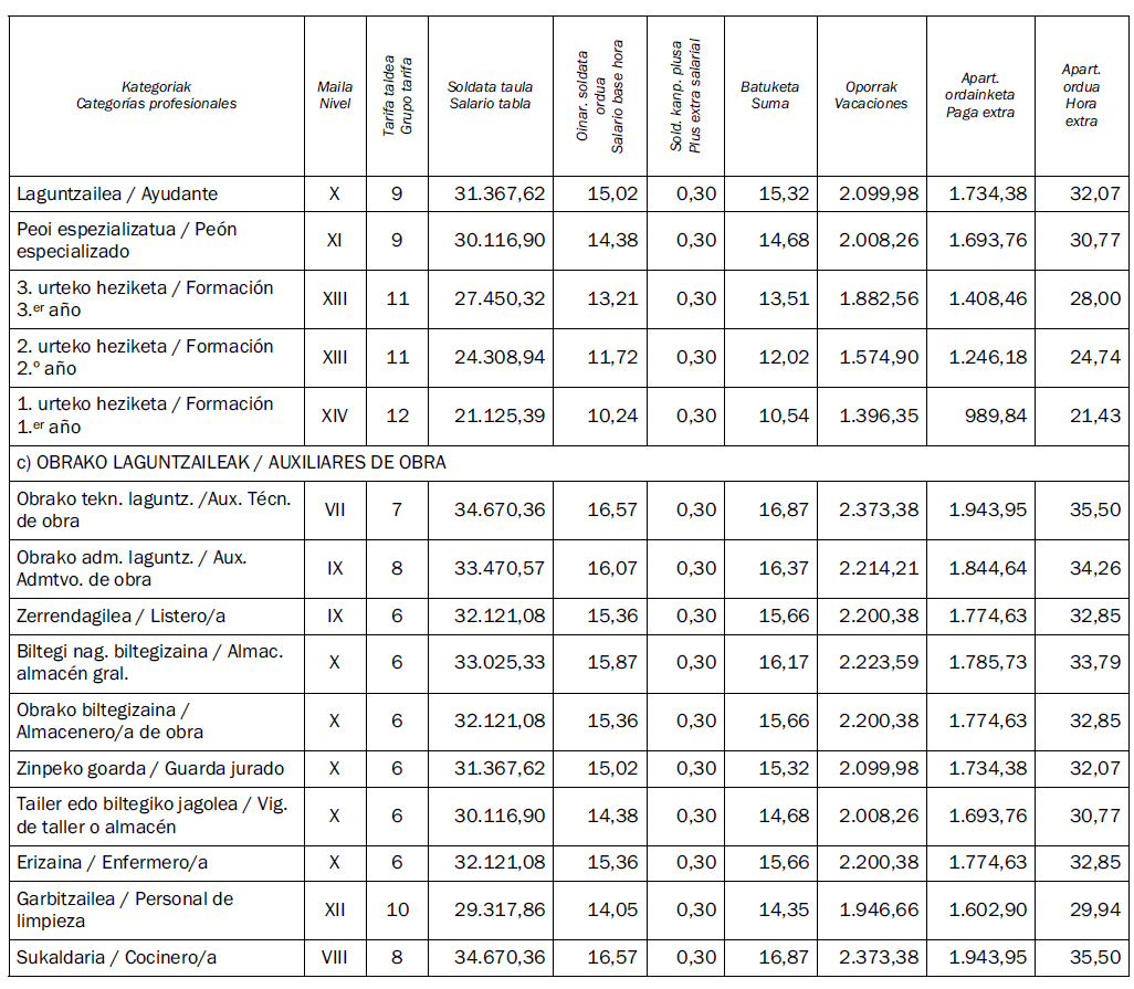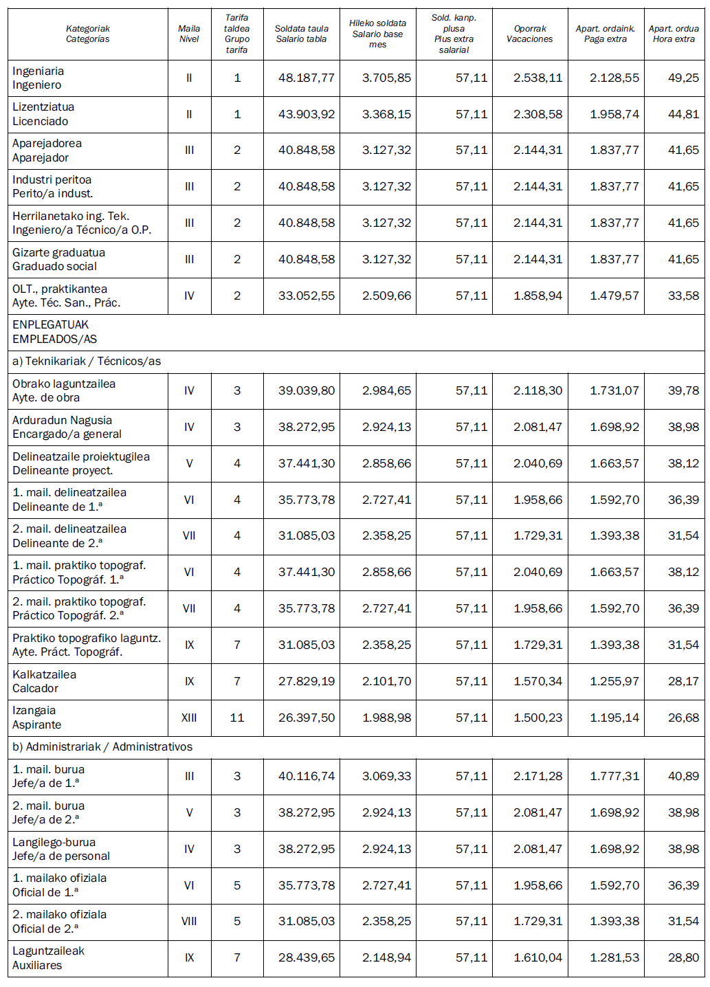 Todos/as aquellos/as trabajadores/as que previamente hayan obtenido el carnet de Gruísta homologado por el Gobierno Vasco, y siempre que la misión en obra sea la utilización de la grúa, percibirán el salario equivalente a oficial de primera, oficios clásicos.