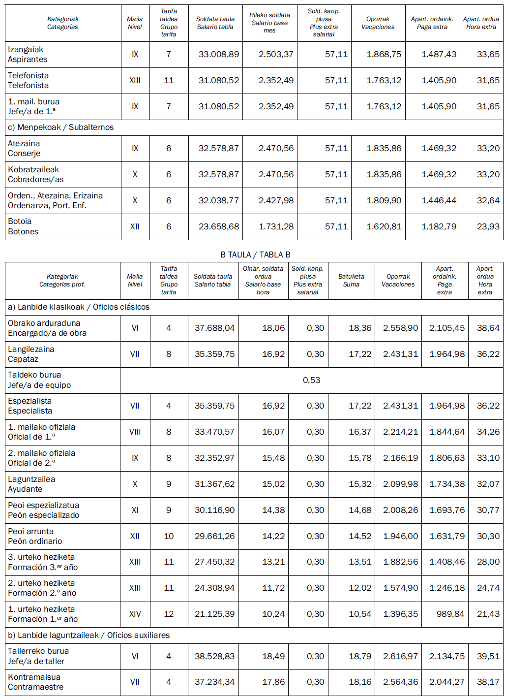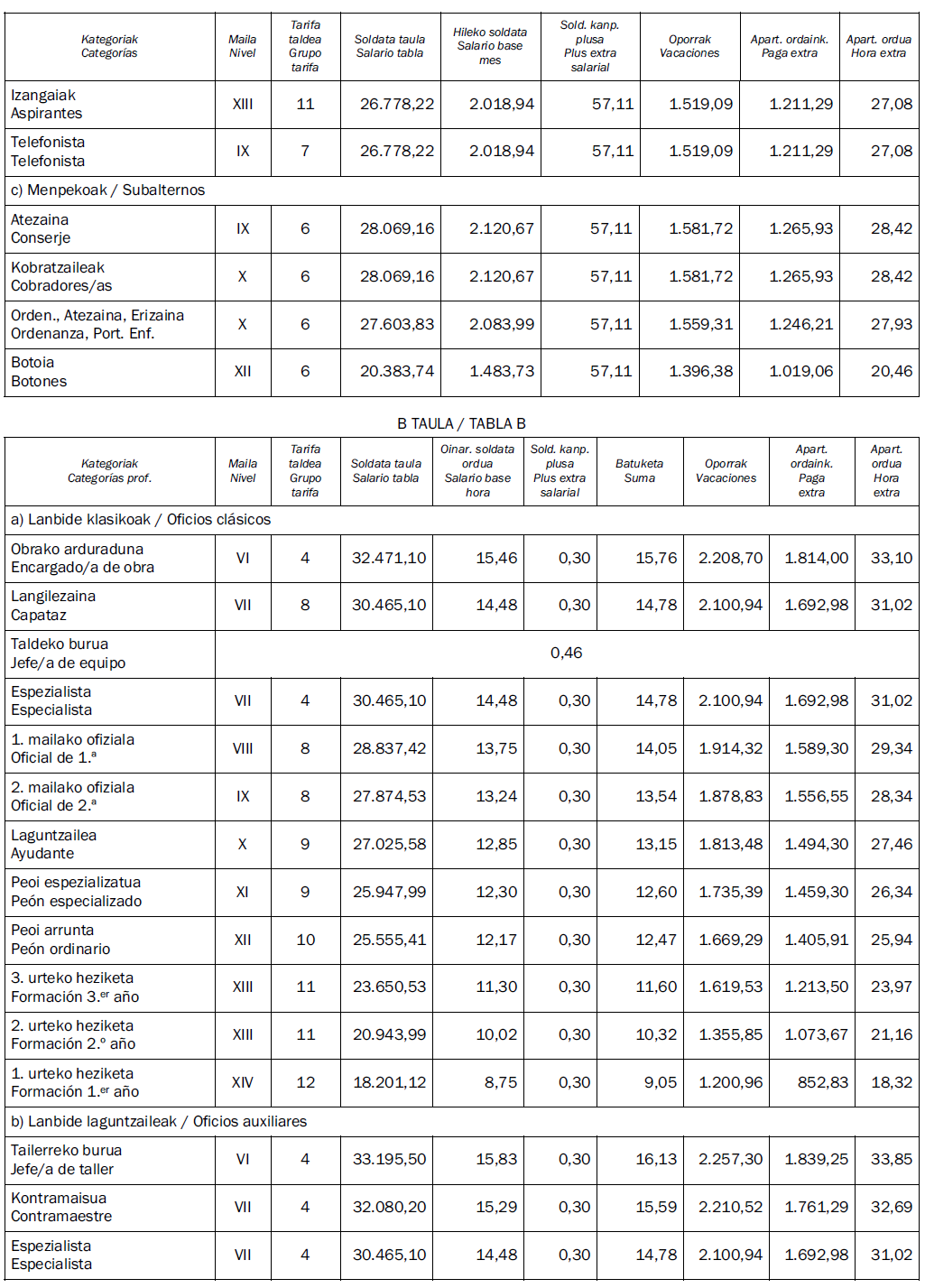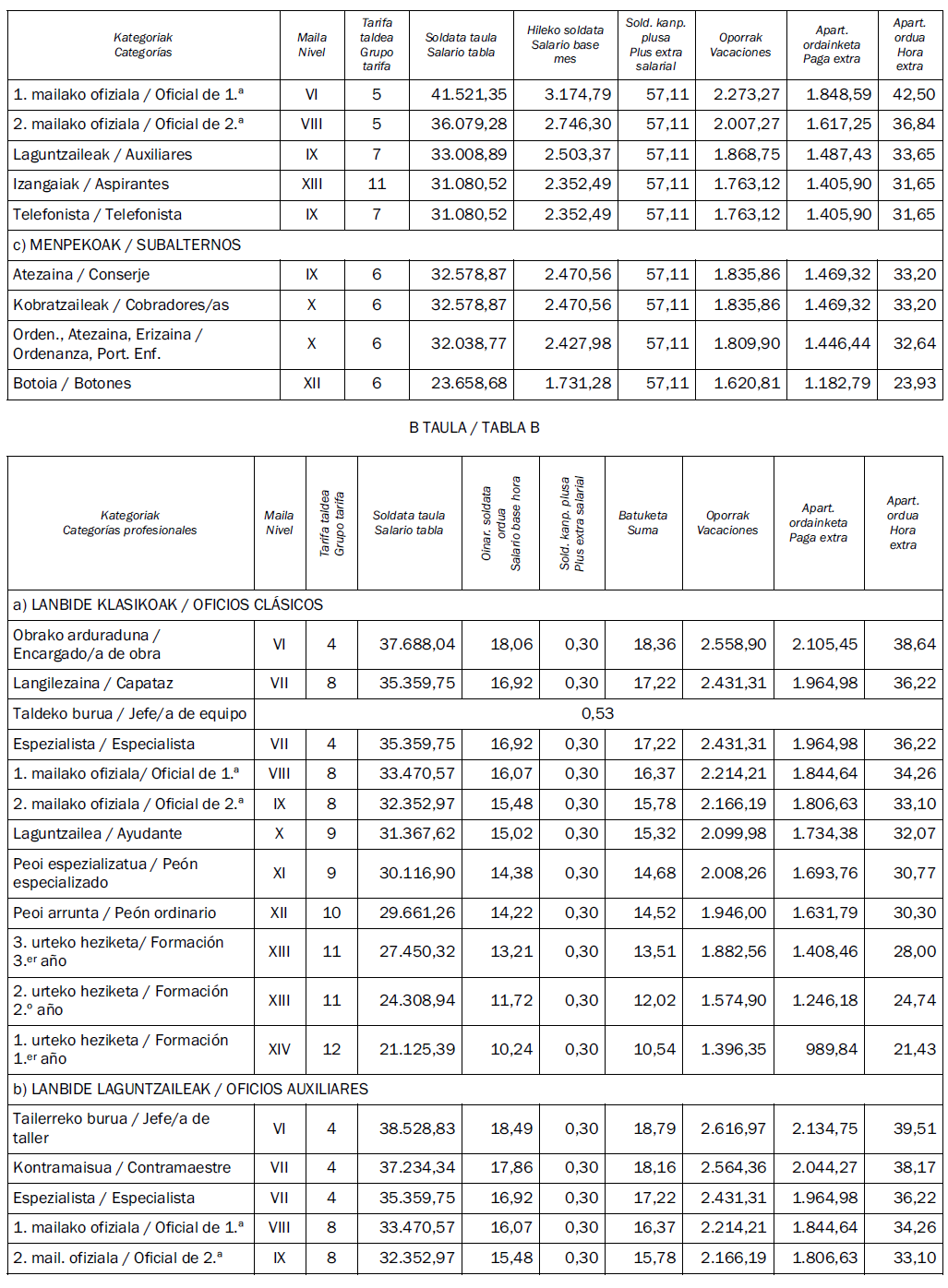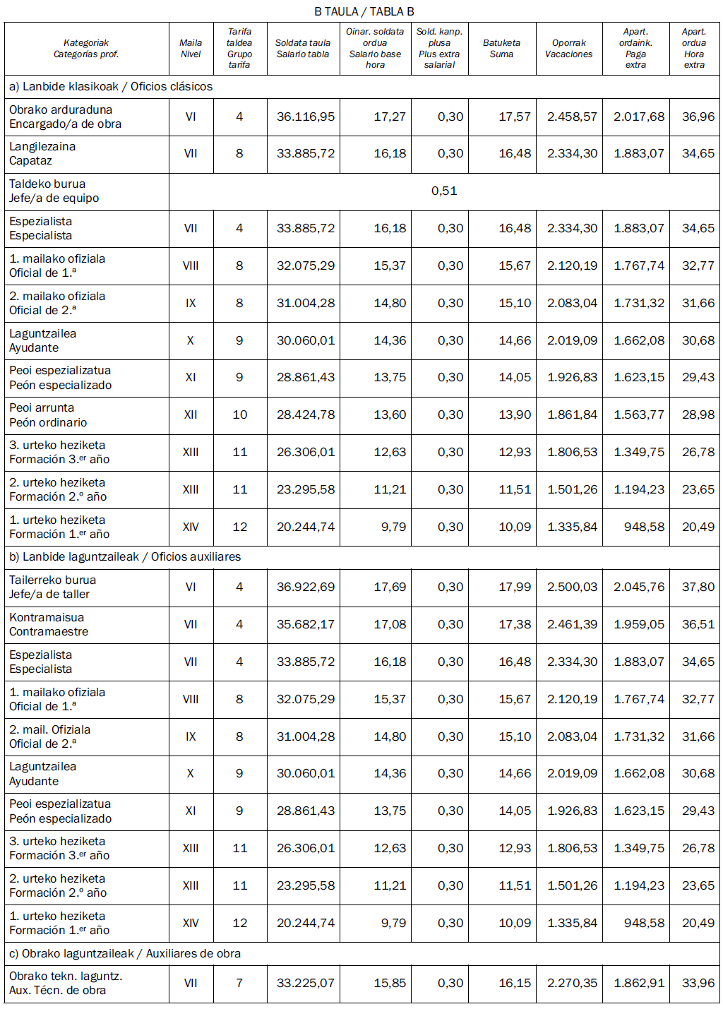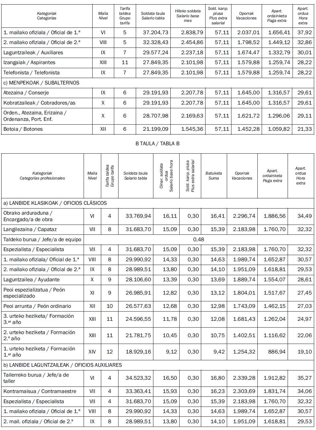 Corrección de errores: Acuerdo sobre actualización de las tablas salariales de los años 2021, 2022, 2023, y 2024 del convenio colectivo de la Construcción y Obras Públicas de Gipuzkoa (código 20000455011981).