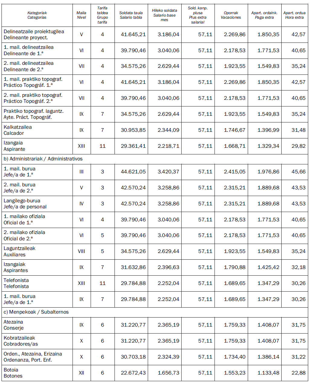 b) Personal de los niveles restantes: 14,77 euros diarios.