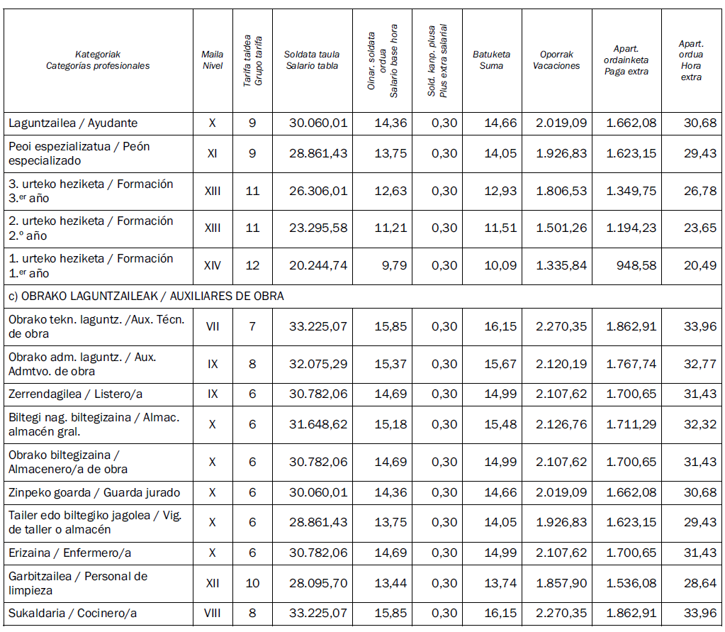 Advertidos errores en la publicación efectuada en el BOLETÍN OFICIAL de Gipuzkoa n.º 170 de 8 de septiembre de 2025, del acuerdo sobre actualización de las tablas salariales de los años 2021, 2022, 2023, y 2024 del convenio colectivo de la Construcción y Obras Públicas de Gipuzkoa, se procede a efectuar las oportunas modificaciones, publicando de nuevo el citado acuerdo en su integridad.