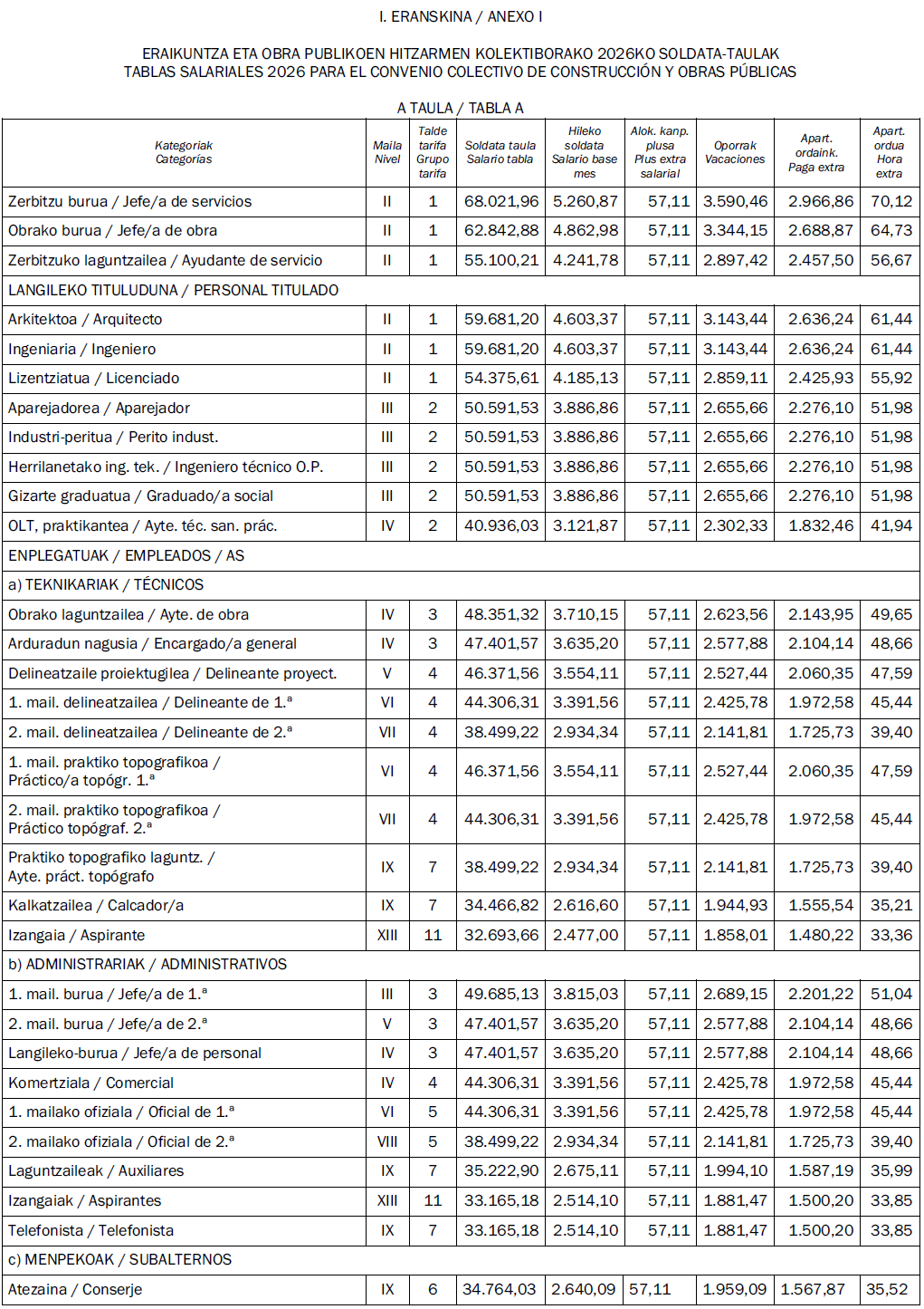 Único. El día 26 de enero de 2026, la comisión negociadora del convenio colectivo del sector de Construcción y Obras Públicas de Gipuzkoa, ha presentado la revisión salarial para el año 2026, prevista en el mismo.