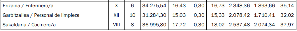 b) Personal de los niveles restantes: 17,09 euros diarios.