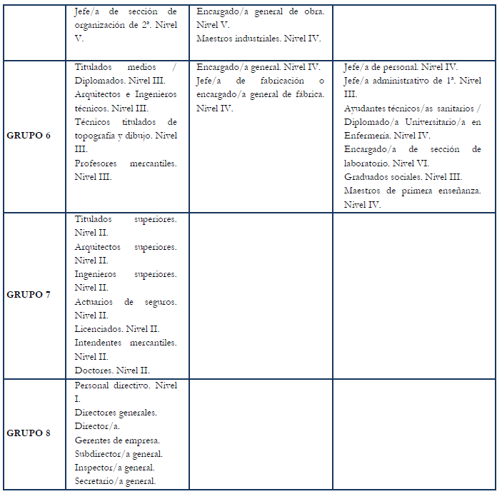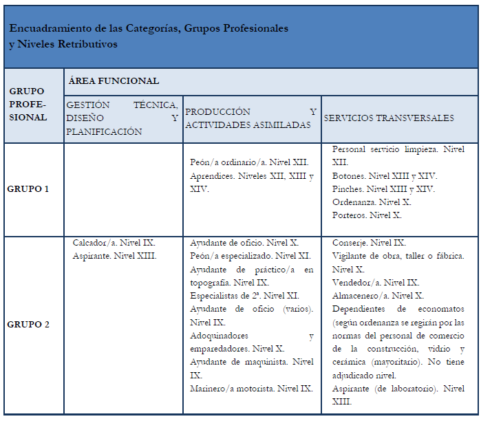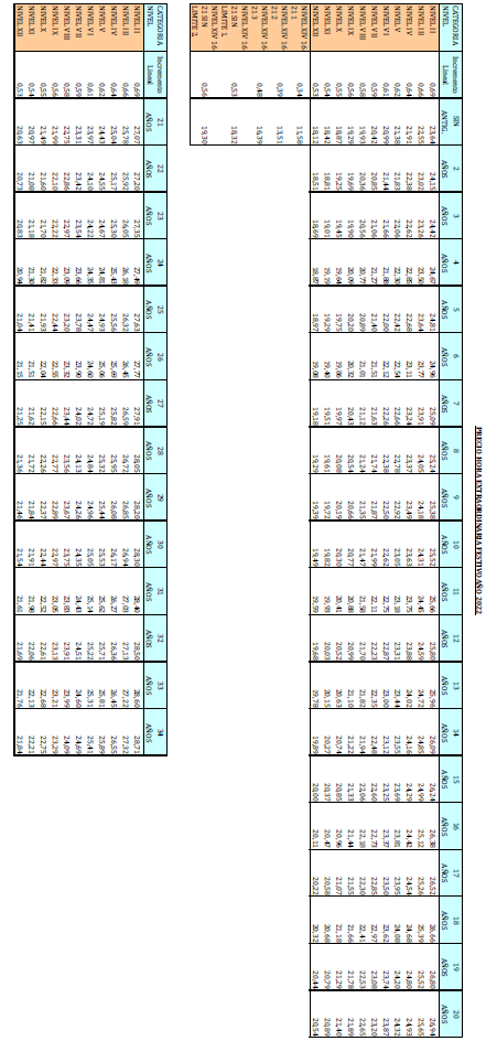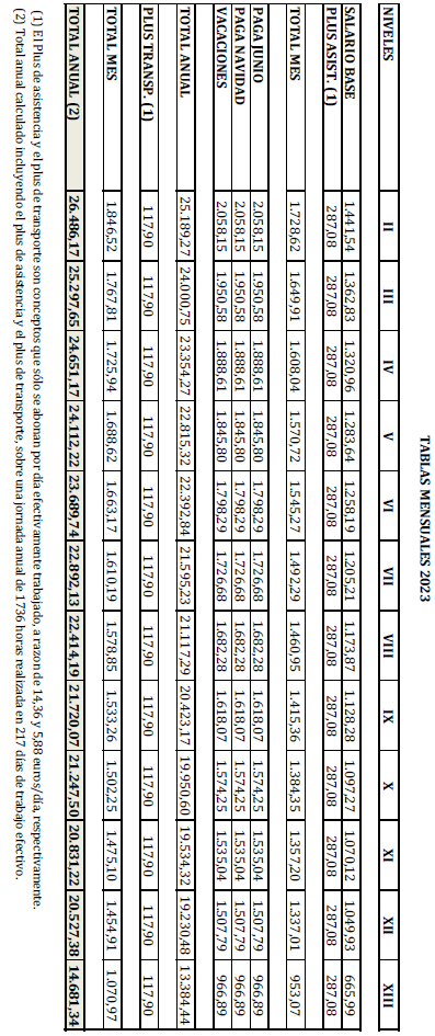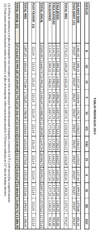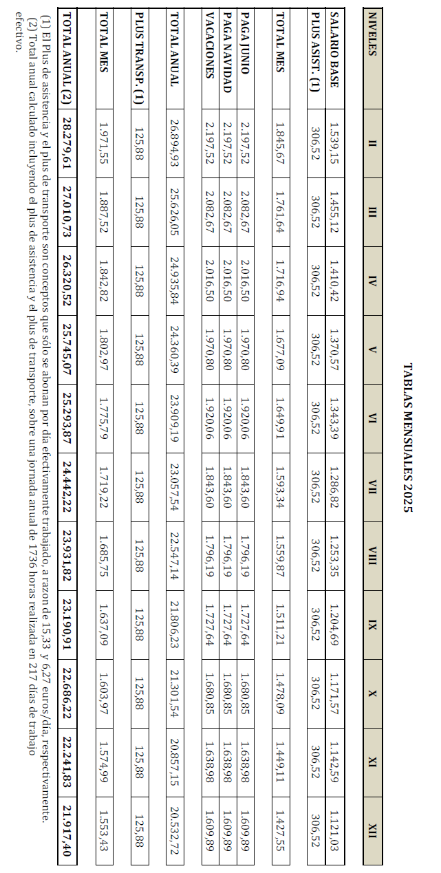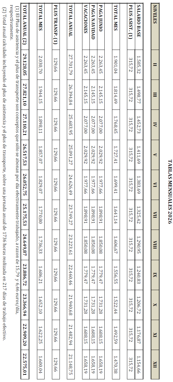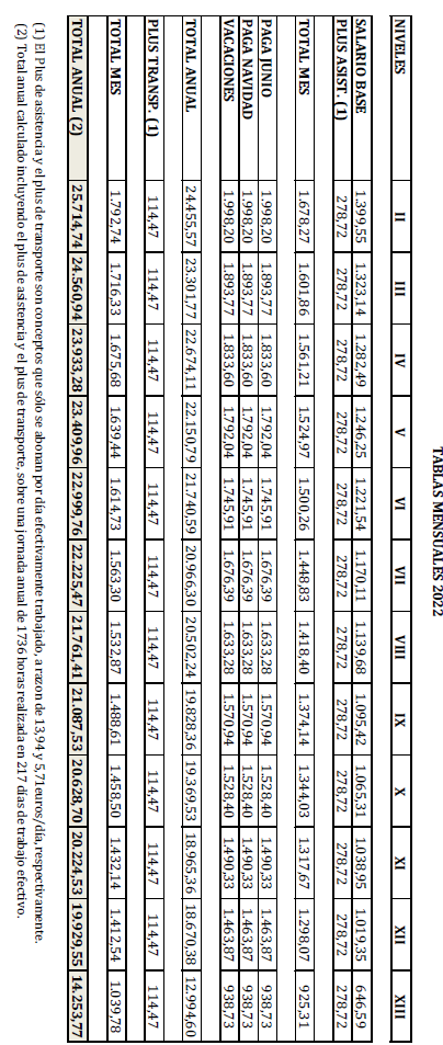 – Tabla de retribuciones mensuales.