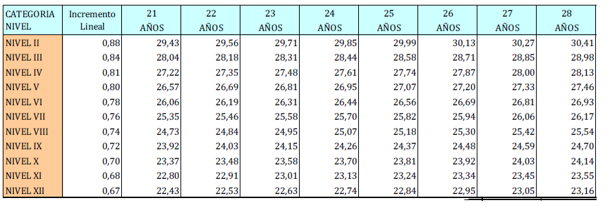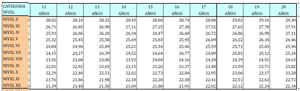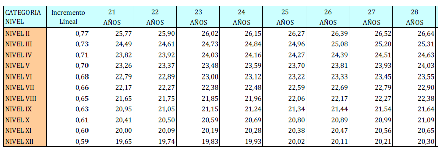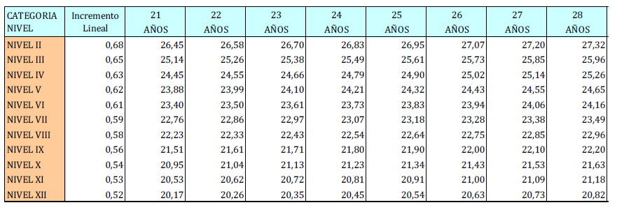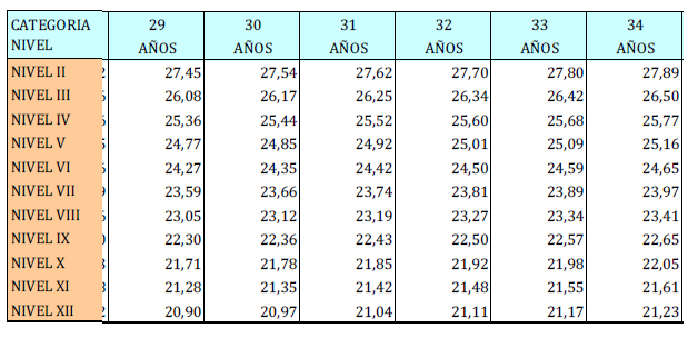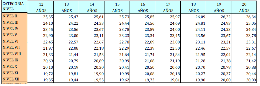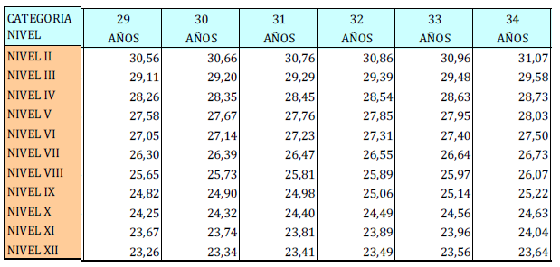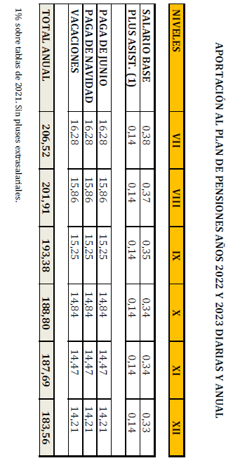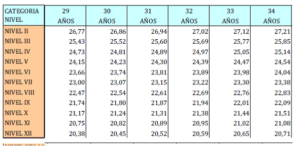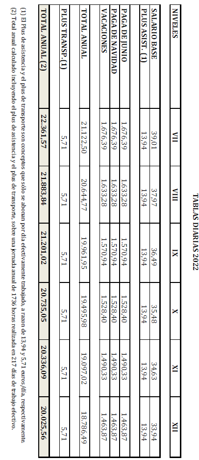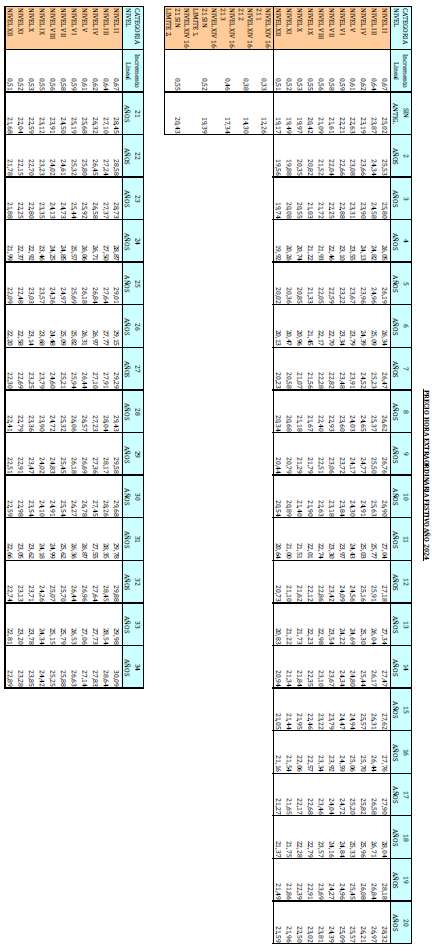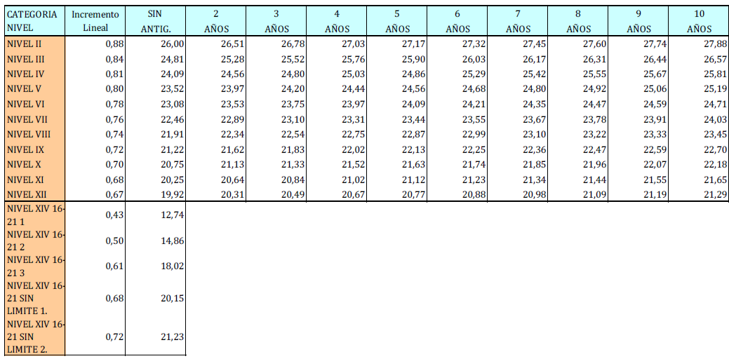 – Tabla de retribuciones diarias.