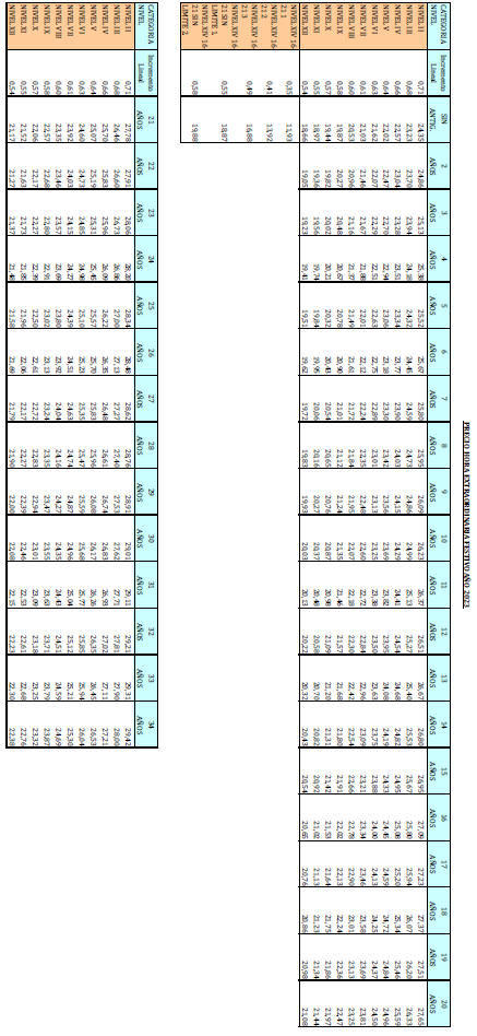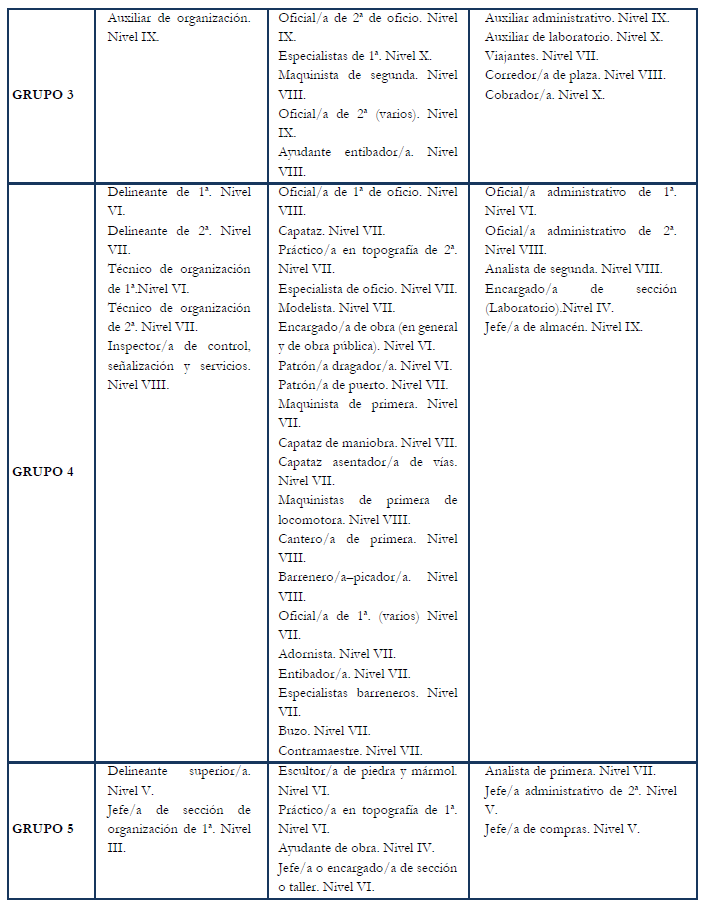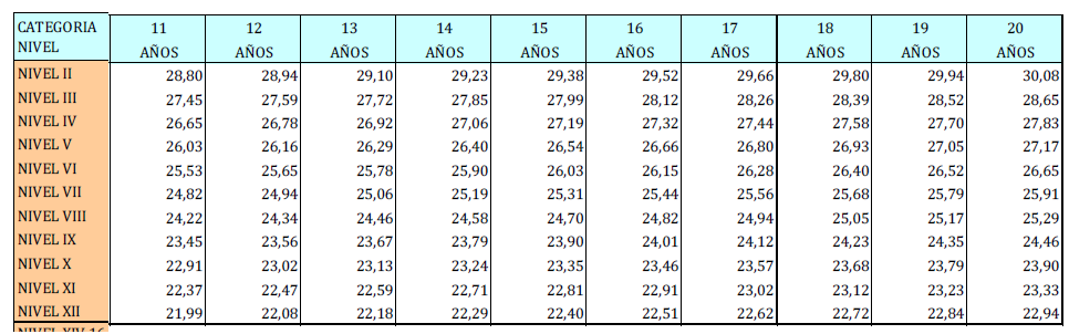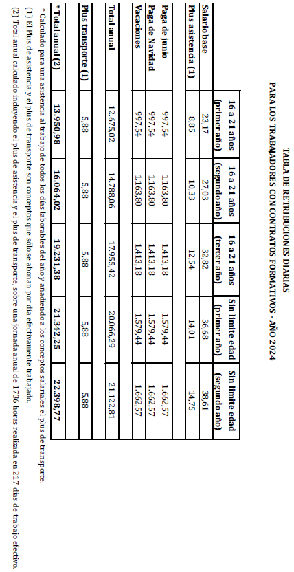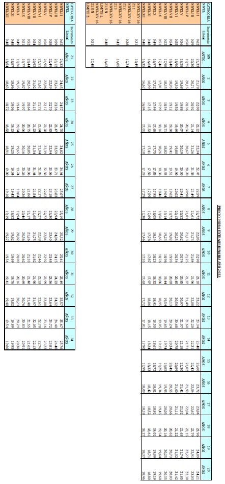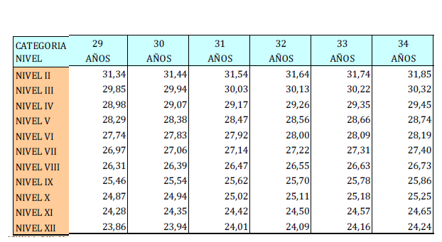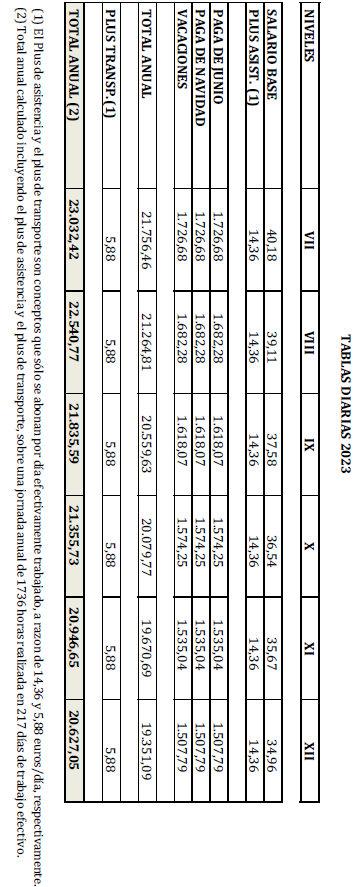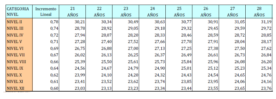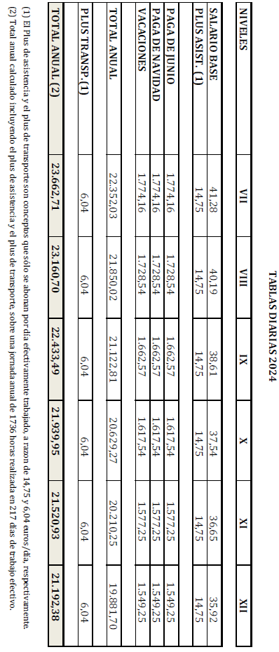 – Tabla de retribuciones diarias.