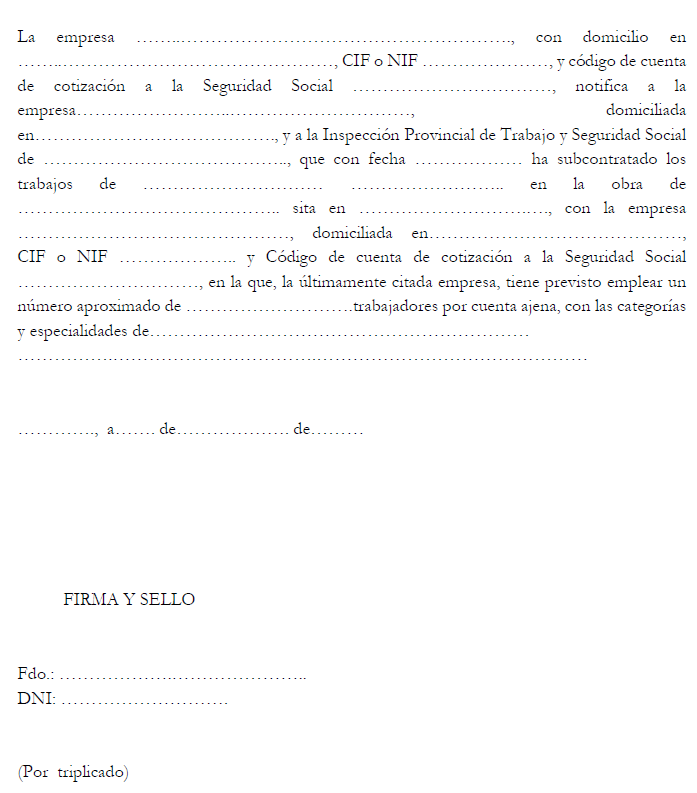La finalización de la obra deberá ser puesta en conocimiento de la representación legal de las personas trabajadoras, en su caso, así como de las comisiones paritarias de los convenios de ámbito correspondiente o, en su defecto, de los sindicatos representativos del sector, con cinco días de antelación a su efectividad y dará lugar a la propuesta de recolocación prevista en este artículo.