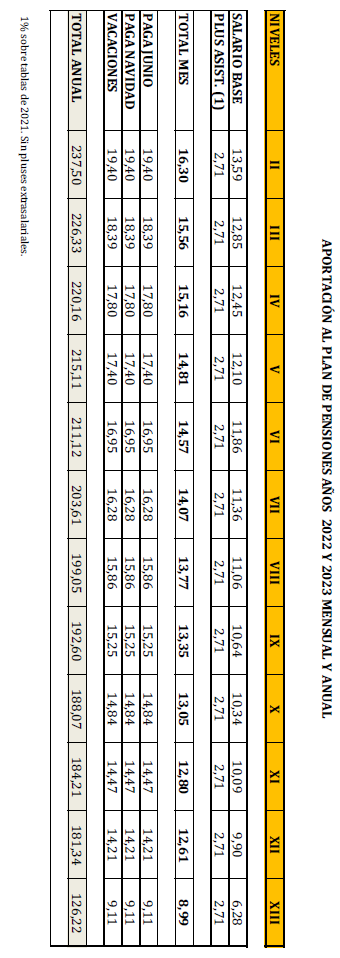 De manera que el 50% de ese exceso irá en un 50% a incremento de las tablas salariales y el otro 50% a contribución al plan de pensiones de las personas trabajadoras en alta en la empresa a dicha fecha de 1 de enero de 2027.