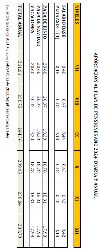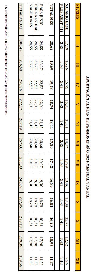 La contribución al plan de Pensiones de 2024 se incrementará en la cantidad correspondiente al otro 0,40%, sin efectos retroactivos, convirtiéndose en la base de partida para la negociación de la contribución empresarial del 2025.