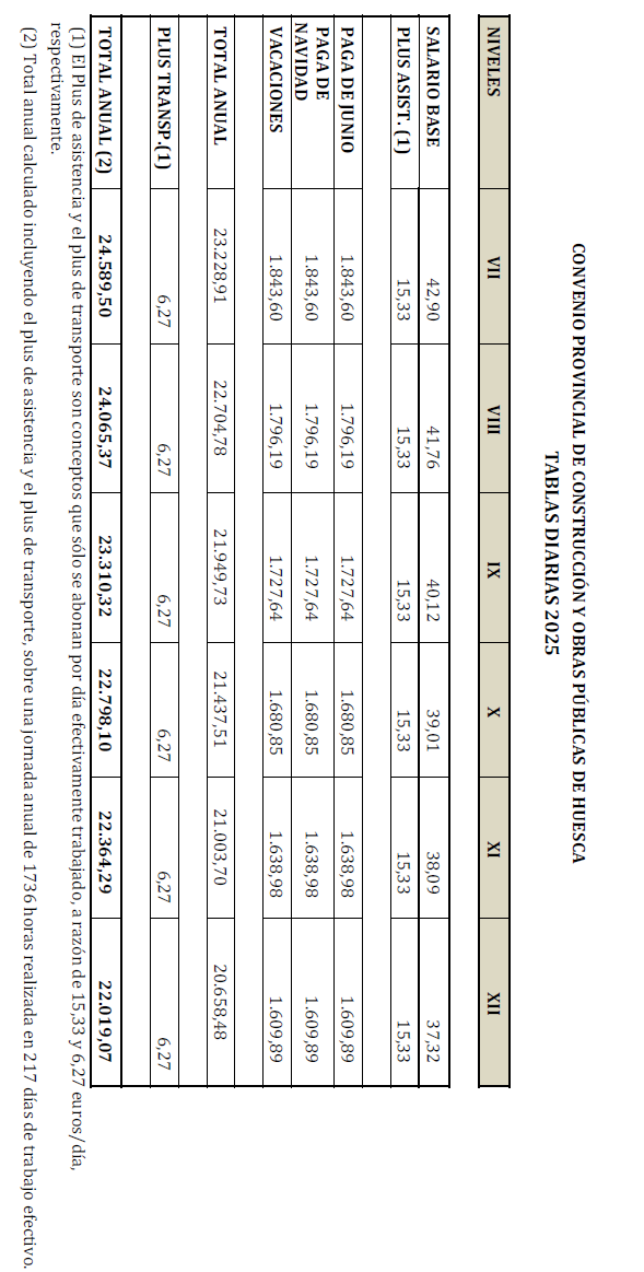 1. REVISIÓN DE LA REMUNERACIÓN MÍNIMA BRUTA ANUAL PARA EL AÑO 2025 Y 2026 EN LA PROVINCIA DE HUESCA.