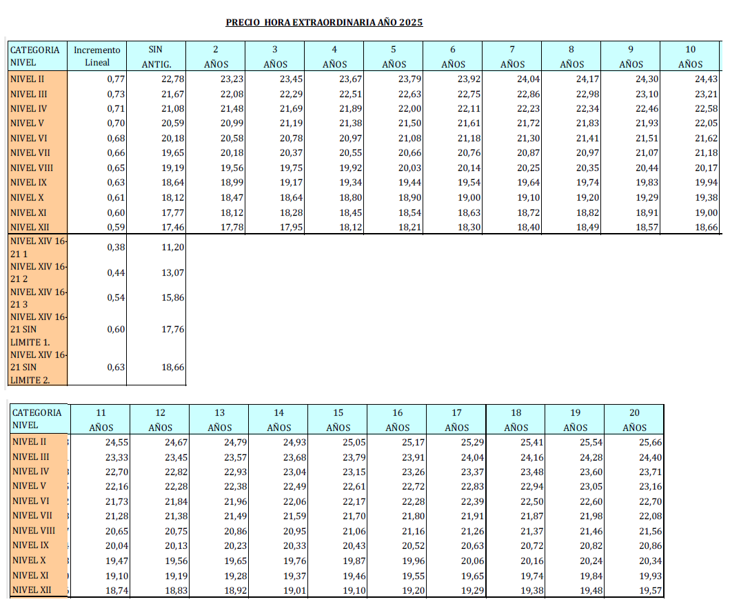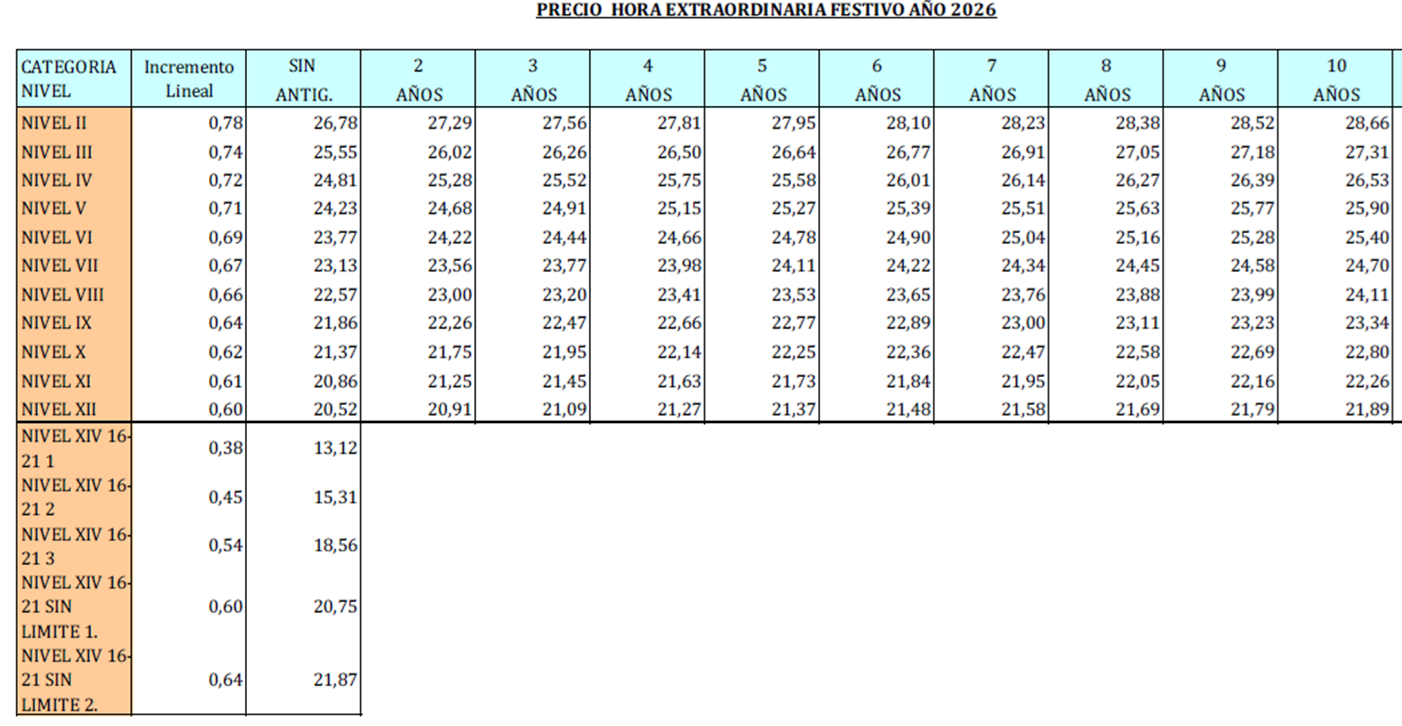 – Tablas de horas extraordinarias festivos.