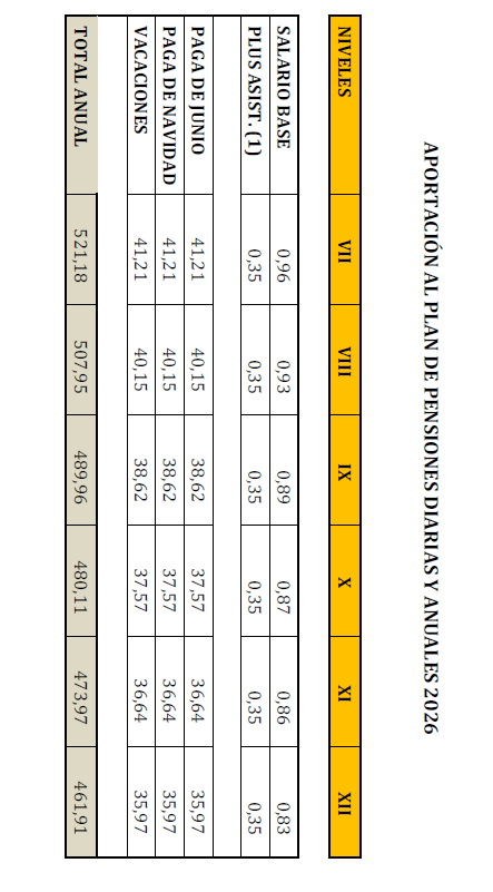 Para 2026, la aportación mantiene los mismos conceptos del año anterior, añadiendo un nuevo porcentaje vinculado a las tablas de 2025: