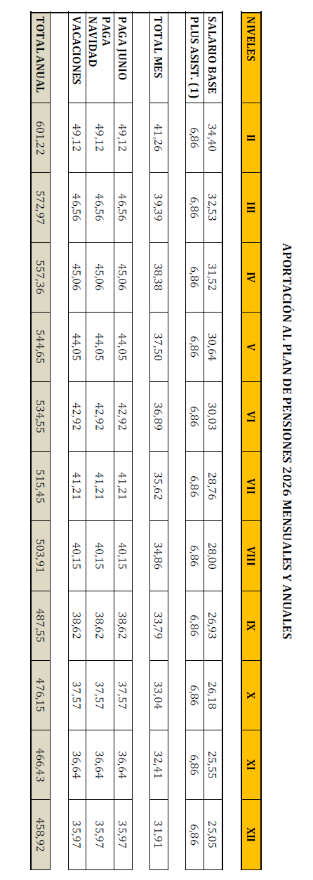 Se incluyen como anexos las aportaciones al Plan de Pensiones de los años 2025 y 2026, detallando a continuación el resultado de las mismas.