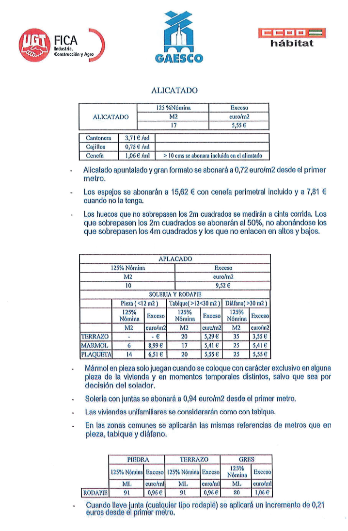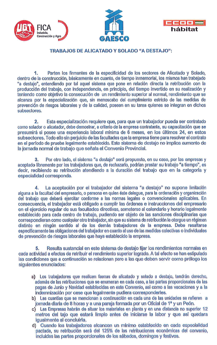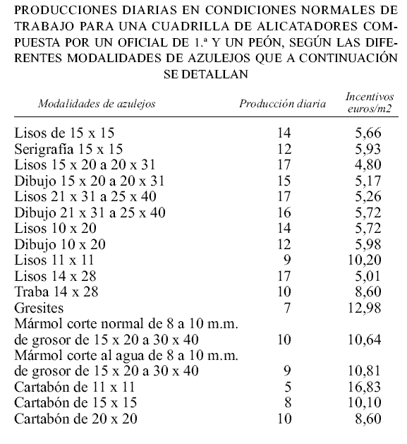 VISTO el Acta de la Comisión Negociadora del Convenio Colectivo del Sector de la Construcción (Código 41000915011982), aprobando la nueva regulación y tablas de rendimientos del subsector del alicatado y solado.