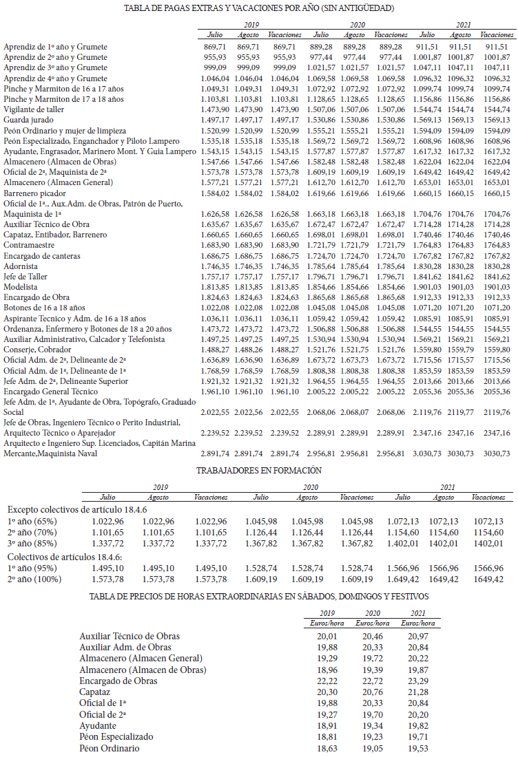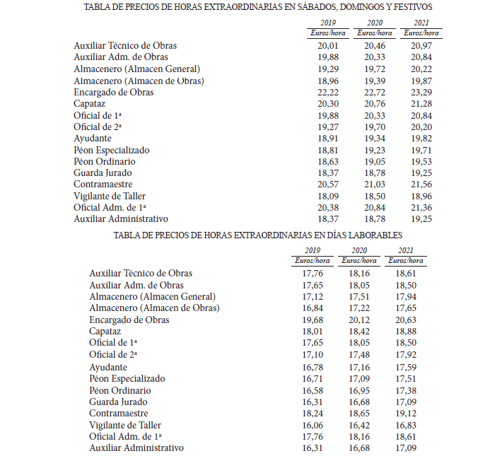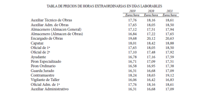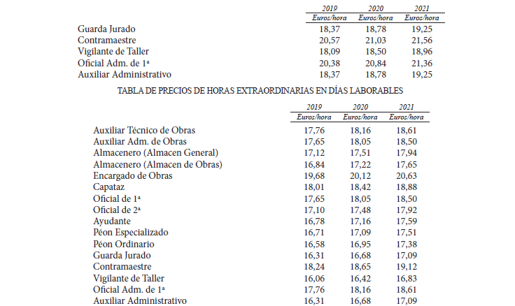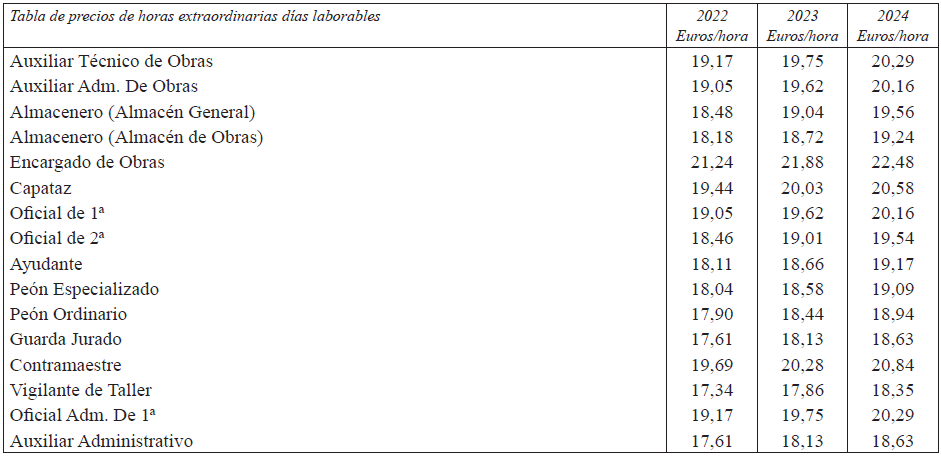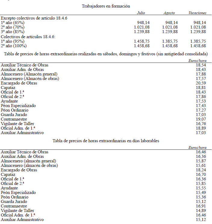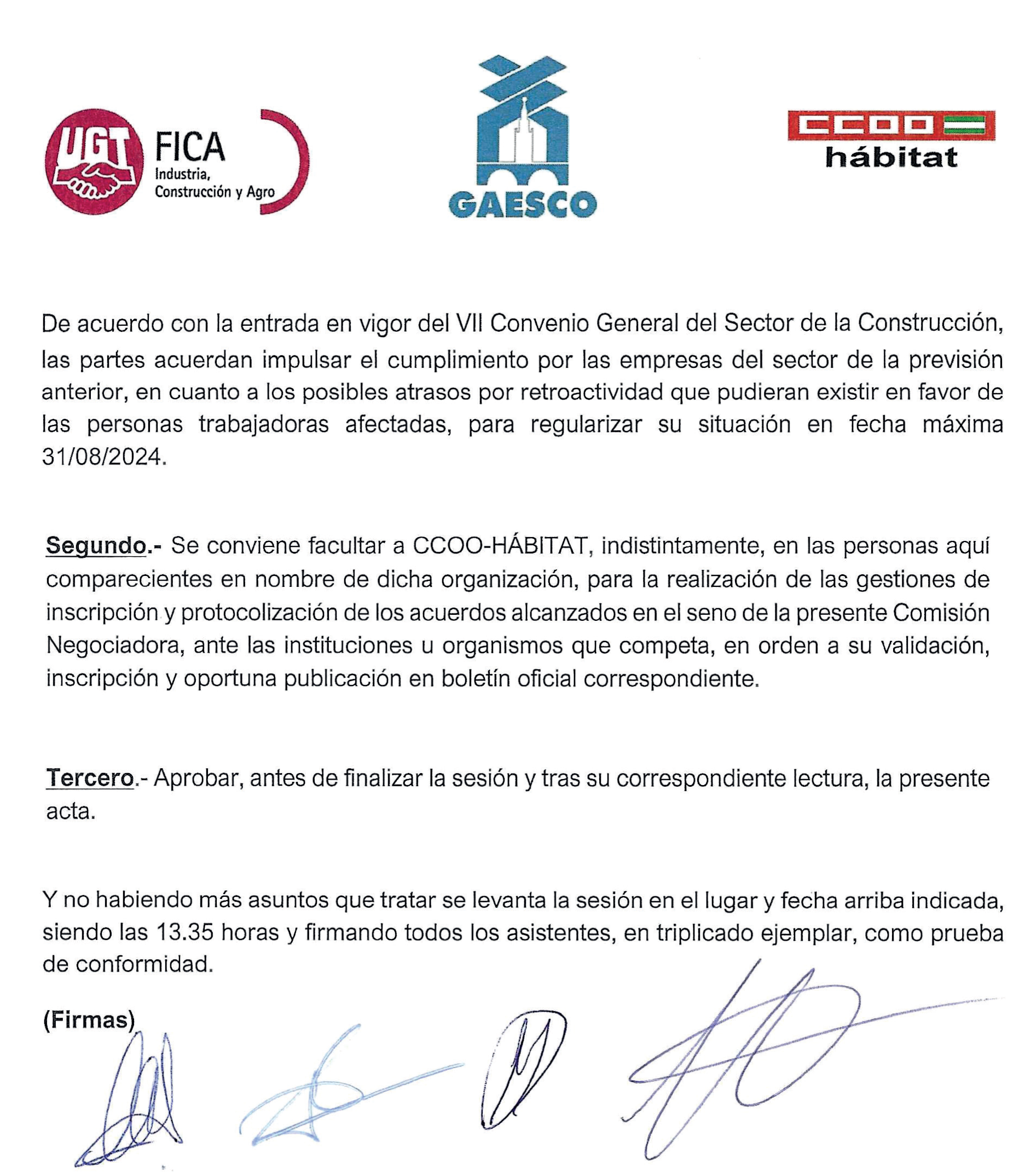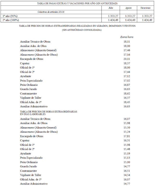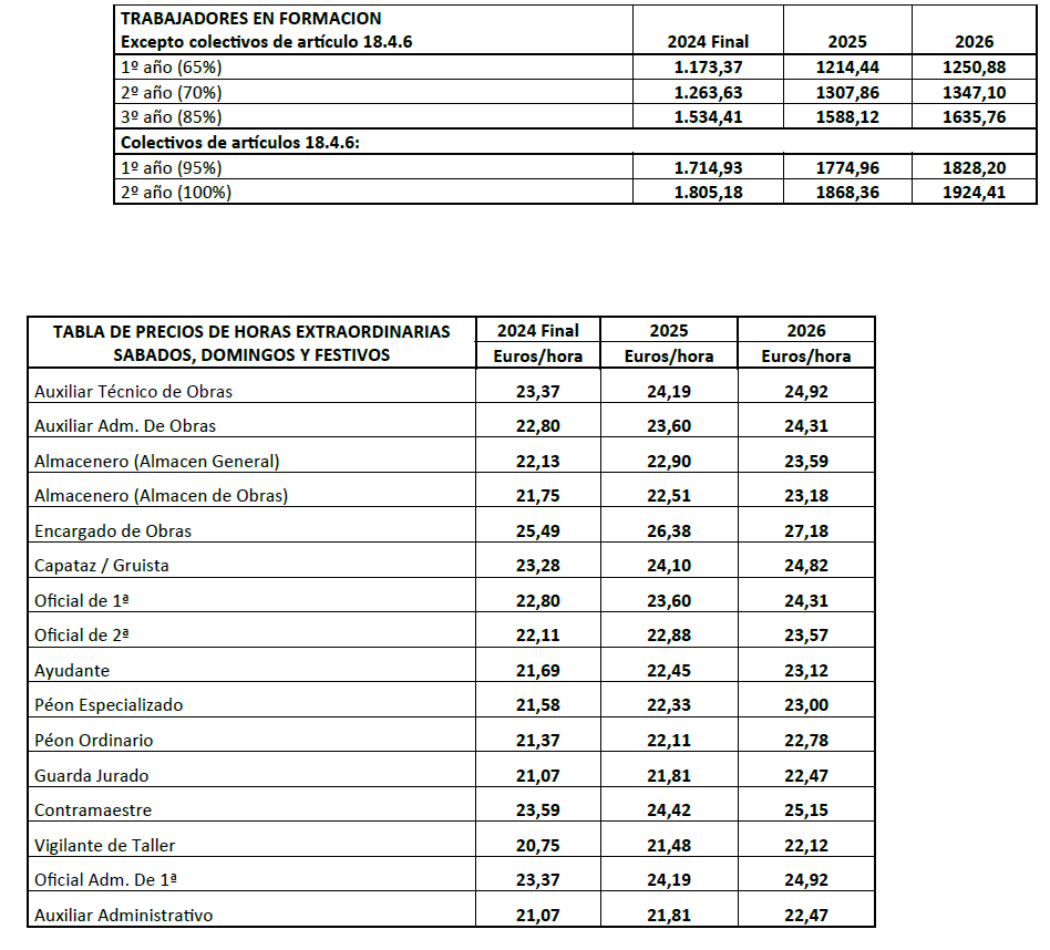 Que, en esta misma fecha, en el seno de la Comisión Negociadora del Convenio, las partes han acordado pactar lo siguiente, con relación a las tablas salariales aplicables para las anualidades 2025 (se encontraba pendiente) y 2026, tomando para ello como referencia los incrementos económicos pactados para los referidos ejercicios por la Comisión Negociadora del VII Convenio General Estatal para el sector de la construcción, publicados en BOE nº 296 de 10 de diciembre de 2025 (Resolución de 24 de noviembre de 2025, de la Dirección General de Trabajo, por la que se registra y publica el Acuerdo de modificación del VII Convenio colectivo General del Sector de la Construcción).