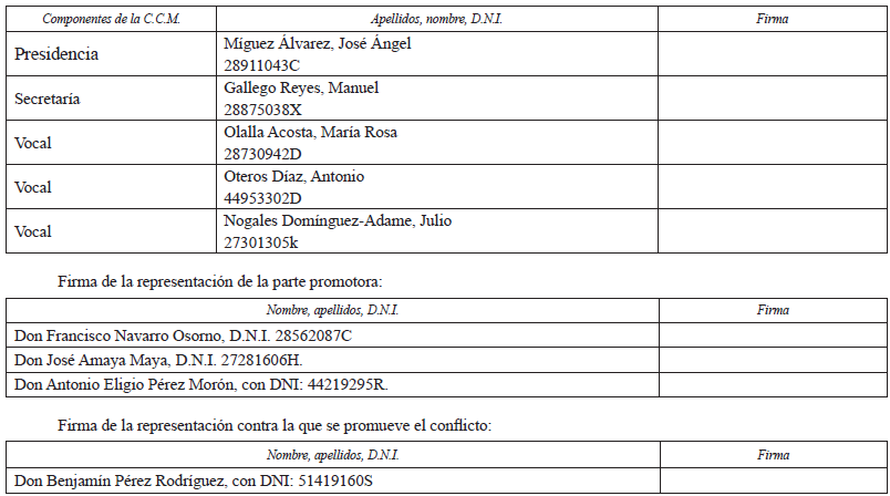 Y no habiendo más asuntos que tratar se levanta la sesión en el lugar y fecha arriba indicada, siendo las 13.45 horas y firmando todos los asistentes, en triplicado ejemplar, como prueba de conformidad.