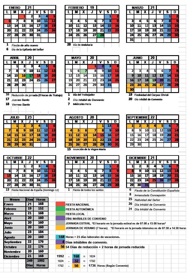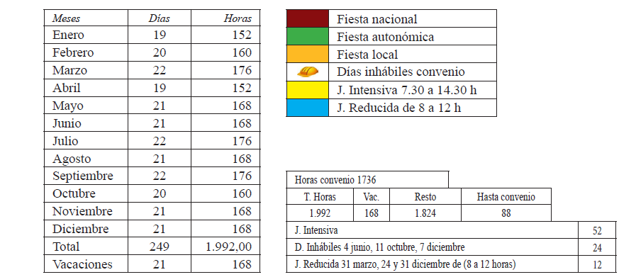 – Calendarios provinciales y locales que concreten la distribución de la jornada anual de trabajo efectivo.