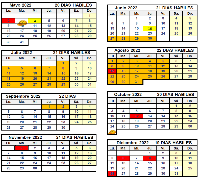 a) Se declaran d í as i n h áb i l es d e c on v en i o los siguientes: