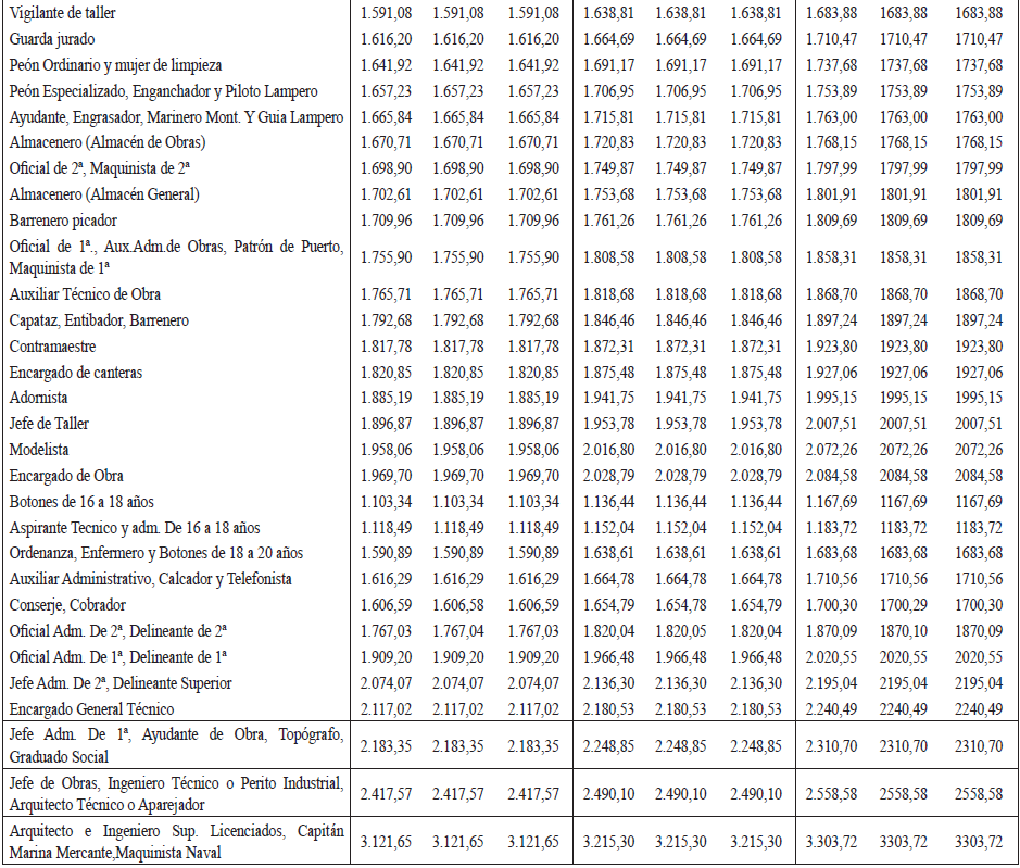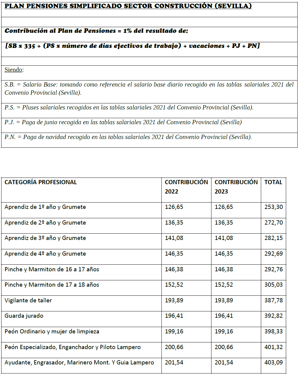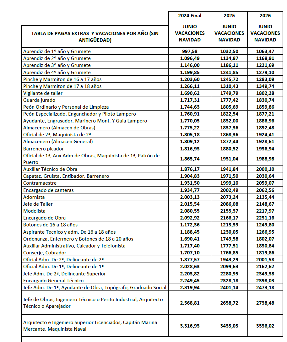 – Incremento salarial para 2025, con efectos retroactivos desde el 01/01/2025: 3,5% a tablas salariales + 0,5 adicional a contribución al plan de pensiones simplificado del sector de la construcción.