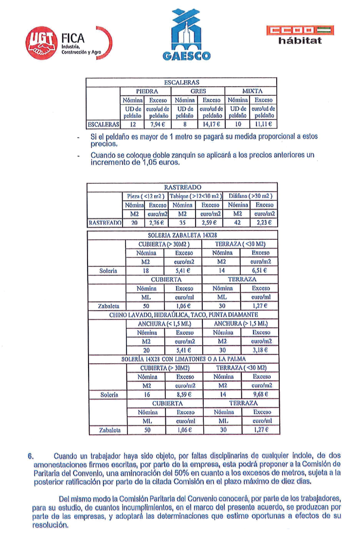Se adjunta a la presente acta como ANEXO, formando parte de la misma, las tablas salariales de los citados ejercicios actualizadas conforme a los incrementos pactados.